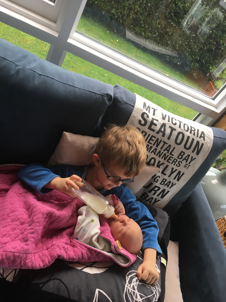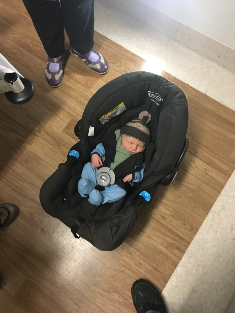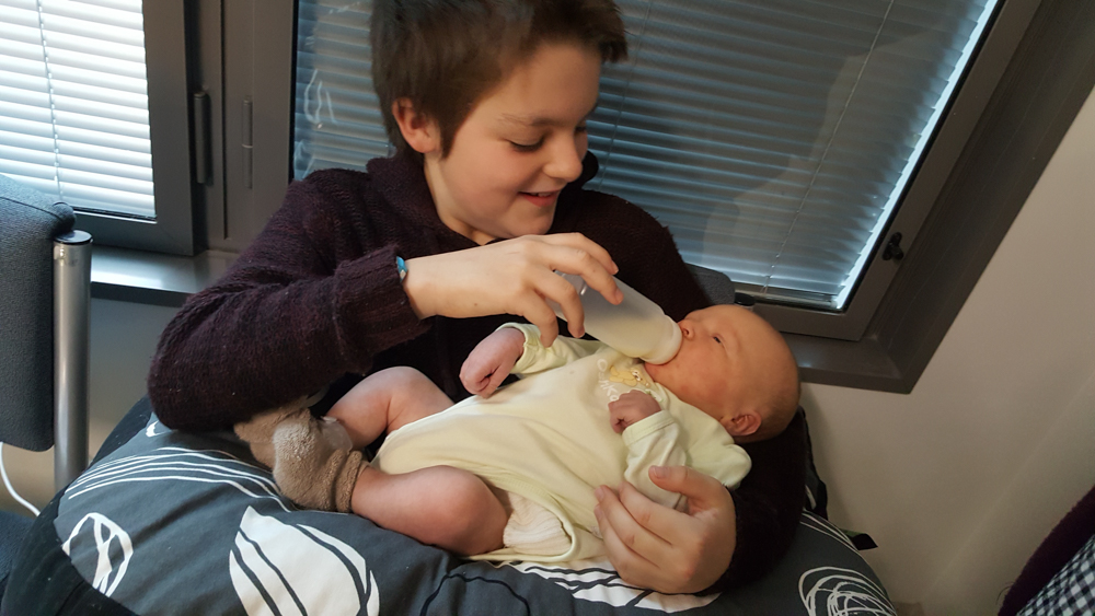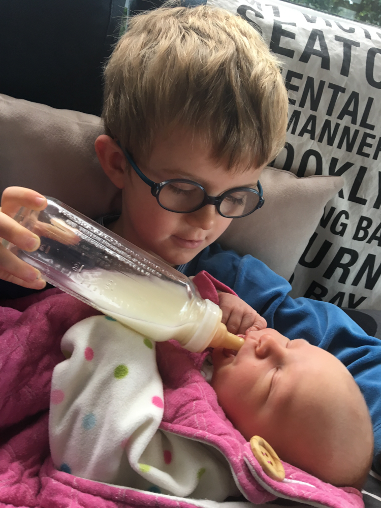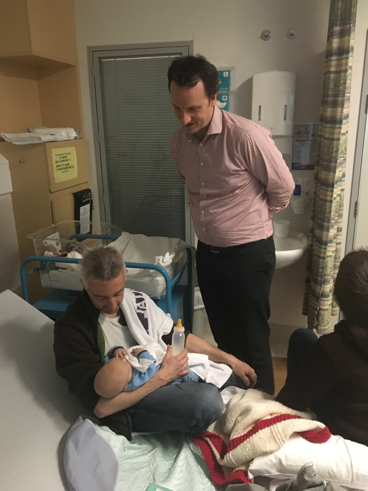 42. Lundi. Seb a dormi a l'hôpital ... et donc n'a pas dormi! Le collostrum est parti depuis longtemps, et on a déjà commencé à donner du lait (maternel) par petite dose et au biberon.