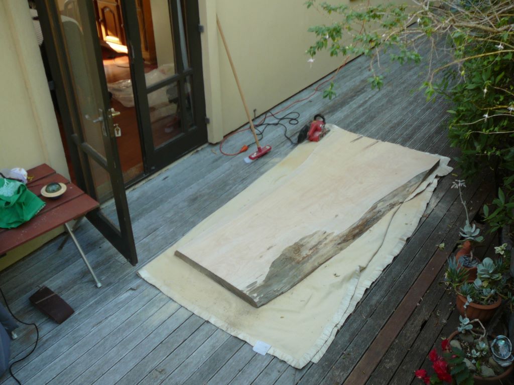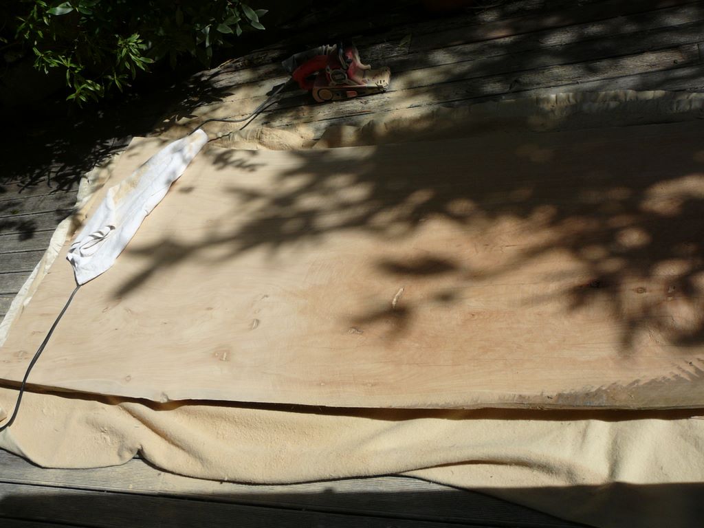 50. .... c'était cette superbe planche (posée sur des pieds temporaires sur cette photo). Je l'ai bien sur huilée pour protéger.