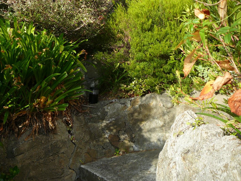 8. Mais depuis l'achat, le 22 mars, nous avons entrepris beaucoup de travaux. Ici, dans la montée vers la maison, une lampe à énergie solaire qui s'allume quand il fait noir, pour éclairer le chemin. Il y en a 4 comme ça.
