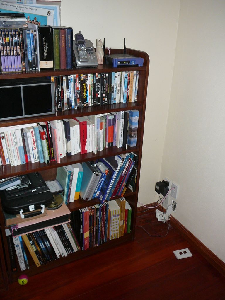 46. .... et côté salon. Maintenant, plutôt que d'encombrer la cuisine, le téléphone est accessible, dans le salon, posé sur l'étagère (qui va bientôt être remplacée par une autre, vraie, belle étagère, que je vais faire moi même).