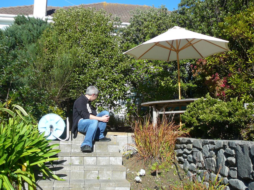 11. En attendant les premiers invités, Seb profite de la terrasse ....