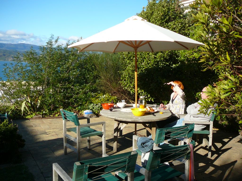 15. Steve et Anne profitent de la terrasse au soleil.