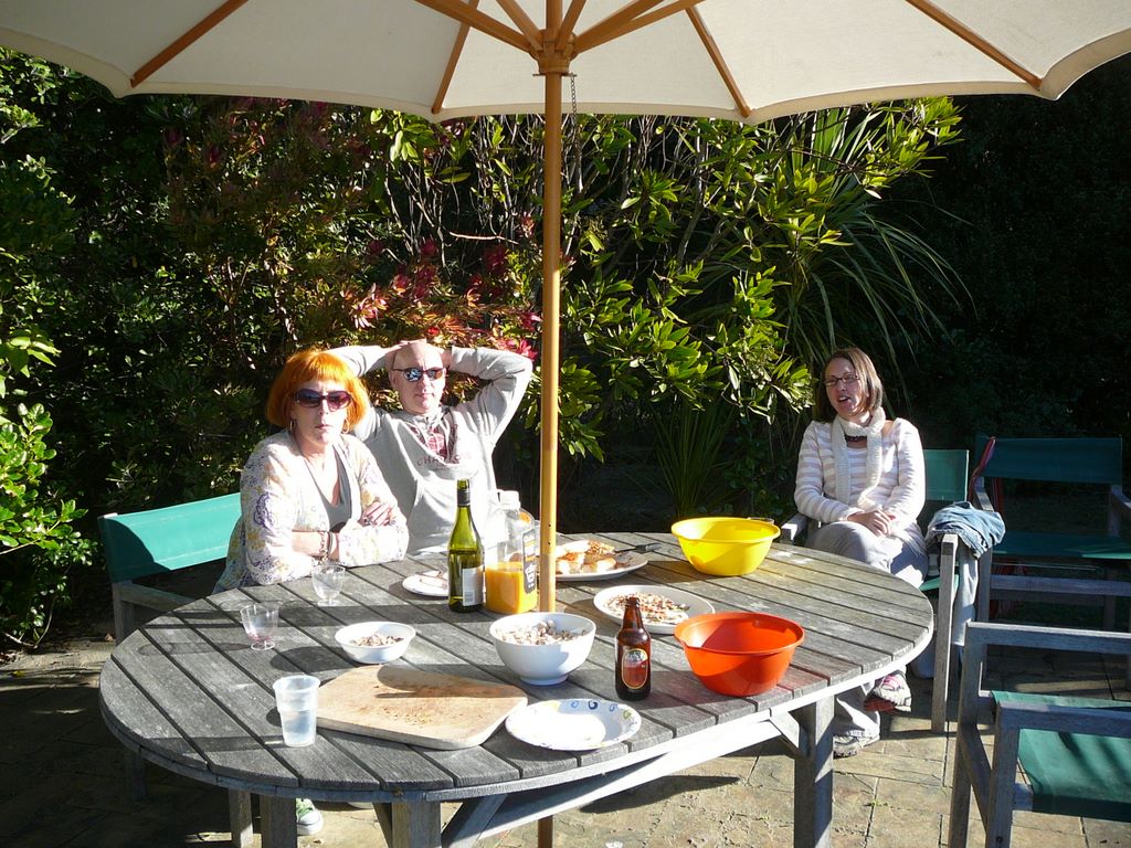 Nous n'avons pas attendu de finir nos travaux pour organiser la pendaison de crémaillière. On a donc invité la fine fleur des amies et amis, et prié pour avoir du beau temps. Pari réussi, puisqu'on a eu un super soleil. Excellente compagnie, excellente météo, excellente journée!