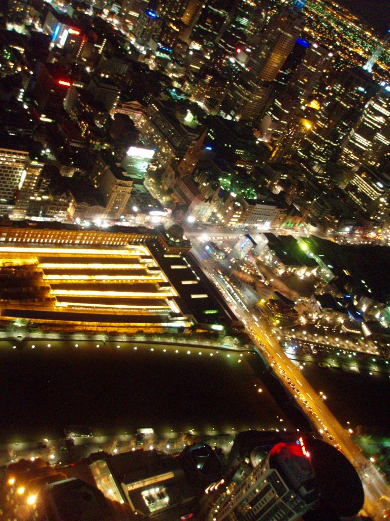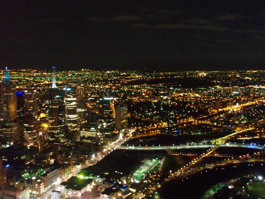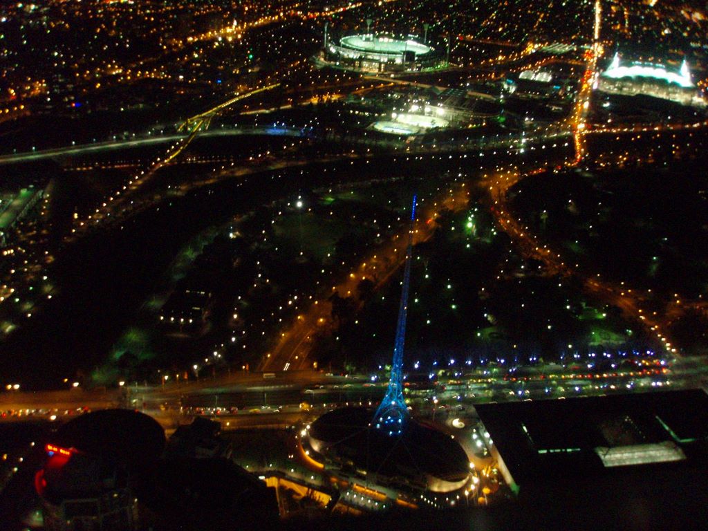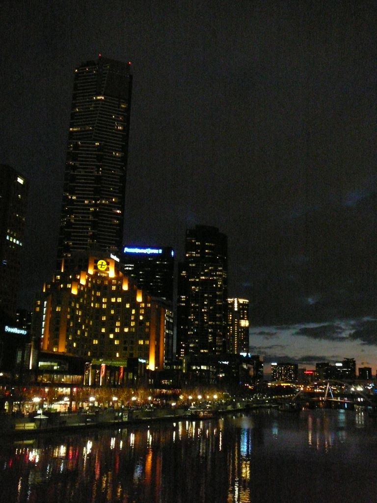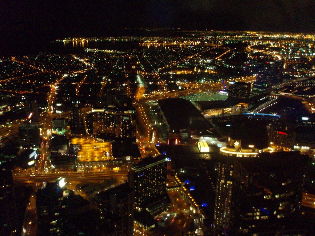 56. Melbourne by night. A gauche, les abords de la baie de Melbourne.