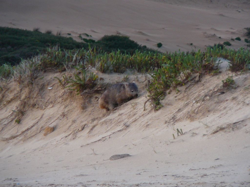 82. Wombat peinard finissant sa journée en rendant visite à des touristes!