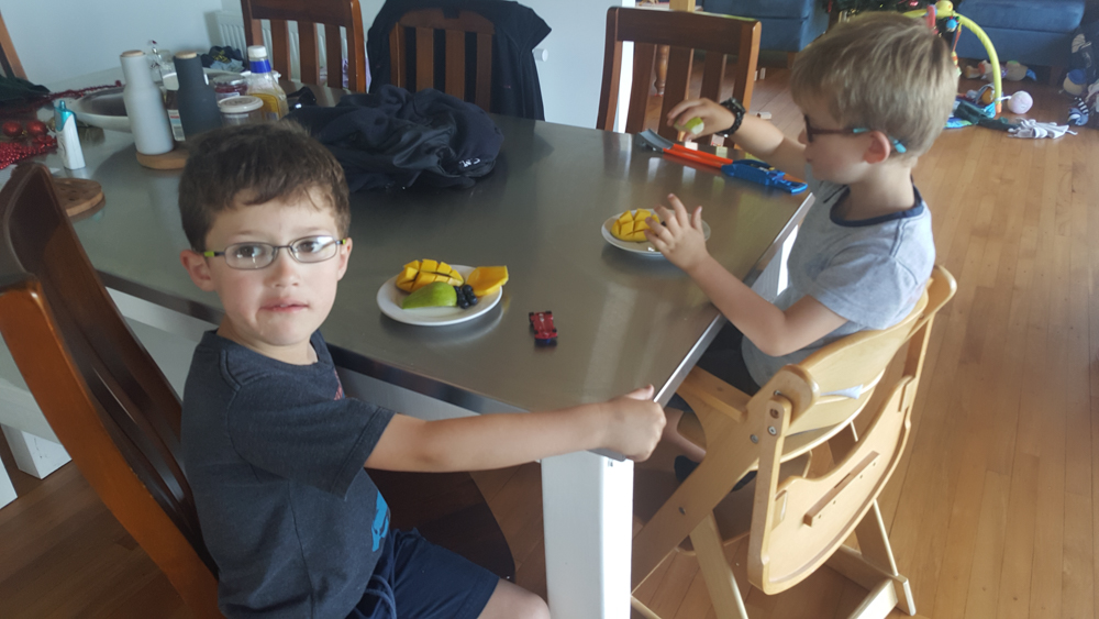 Les parents de Lucas devant s'absenter pour une nuit, nous avons offert de garder Lucas. Celui ci nous a rejoint dimanche midi et, après l'avoir déposé et récupéré de l'école, est reparti lundi soir. Adan et lui ont été adorables, et le seul moment de tension, dimanche après midi, a vite été désamorcé. Difficile de ne pas voir que ces deux là s'adorent!