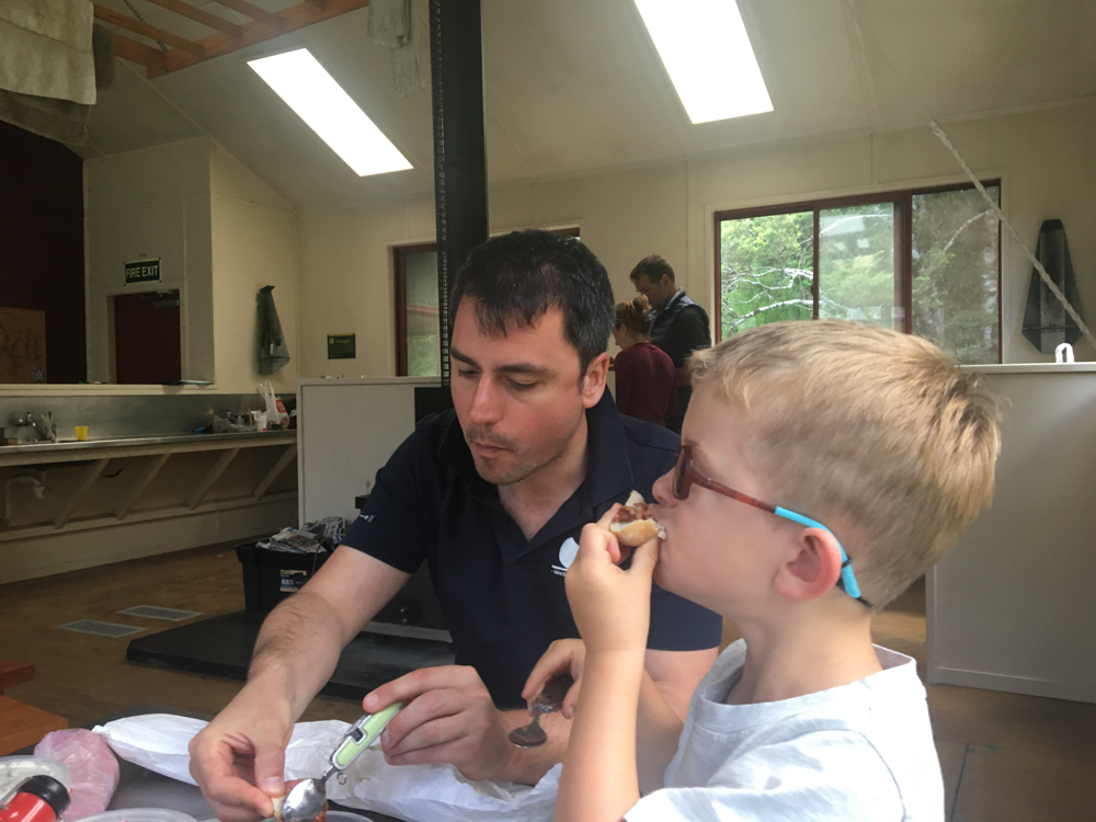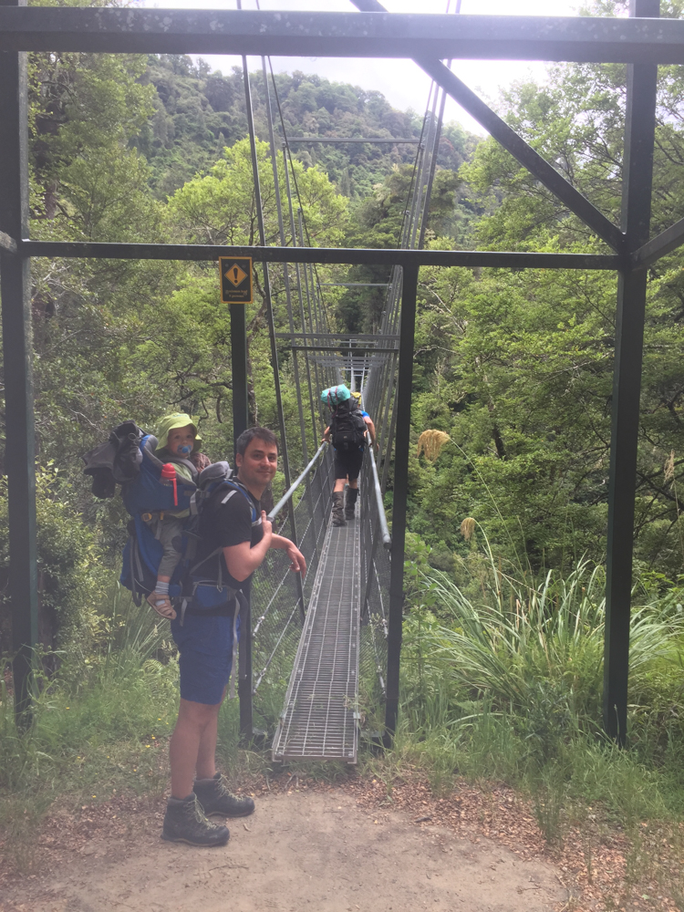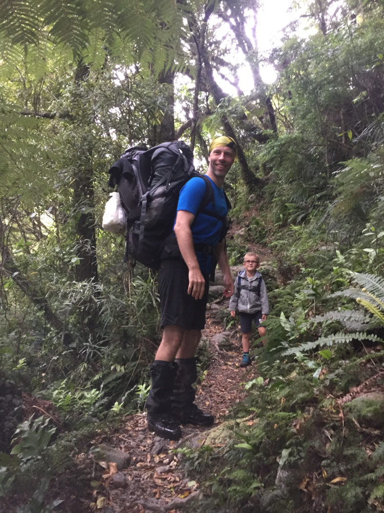 Laurent, Anne-Charlotte, Gabriel, Adan et moi nous sommes frottes au Tararua ce week-end, pour rejoindre une destination que je connais bien: Totara Flats Hut. La derniere fois que je'y suis alle, c'etait l'annee derniere, avec Manu. Il avait plu des seaux, et le sentier ressemblait plus a un torrent qu'a un chemin sylvestre. Cette fois ci, le probleme etait inverse, et les trous d'eau ont ete apprecies quand nous les avons rejoint. La rando s'est bien passee, mais j'avais surement un peu oublie quel point elle etait accidentee. Nous avons donc ete contents d'arriver au refuge. Adan, encore une fois, n'a pas demerite et a fait l'aller/retour sans probleme!