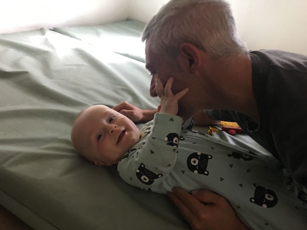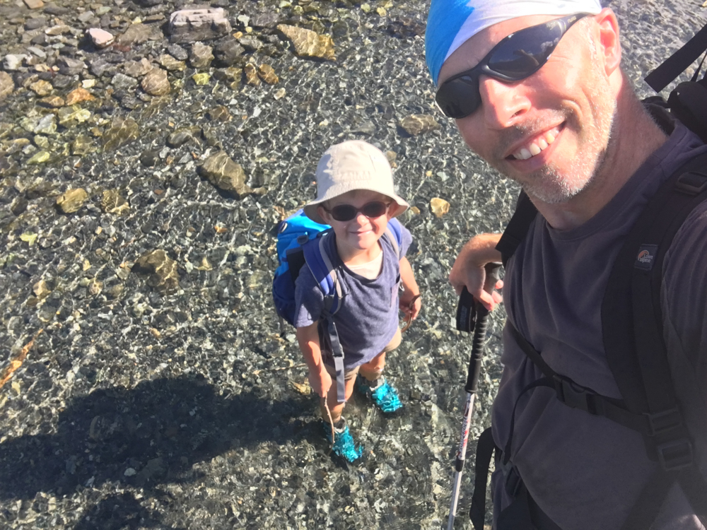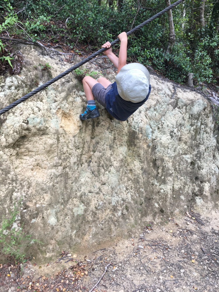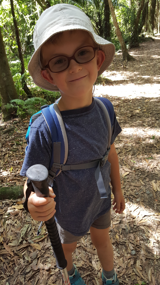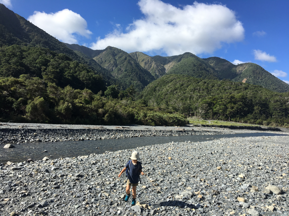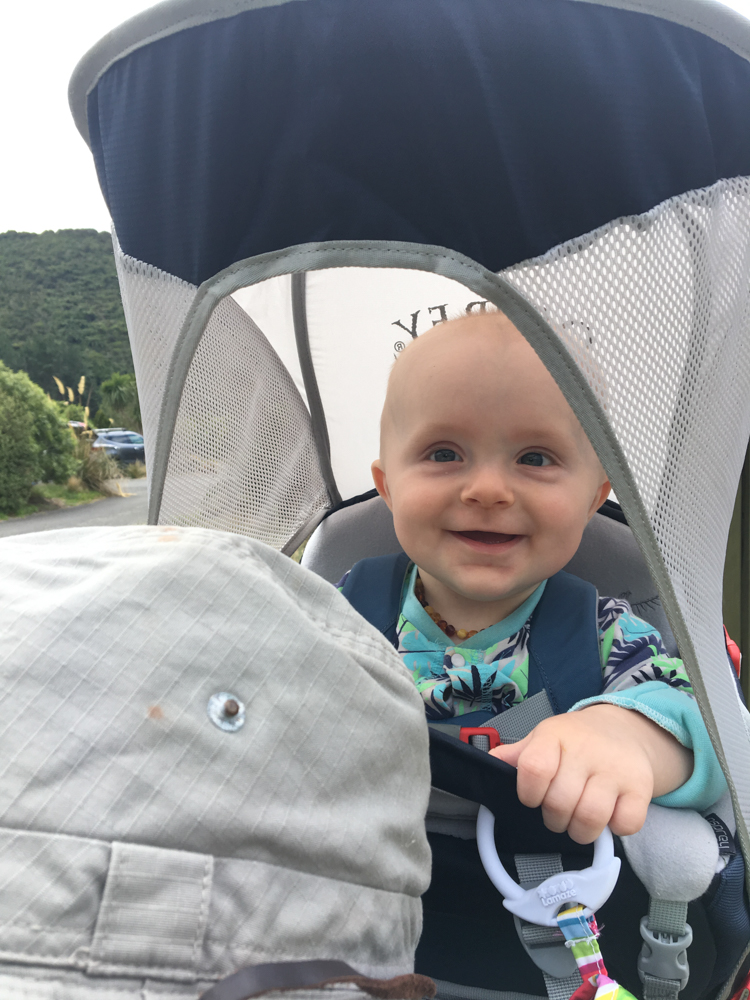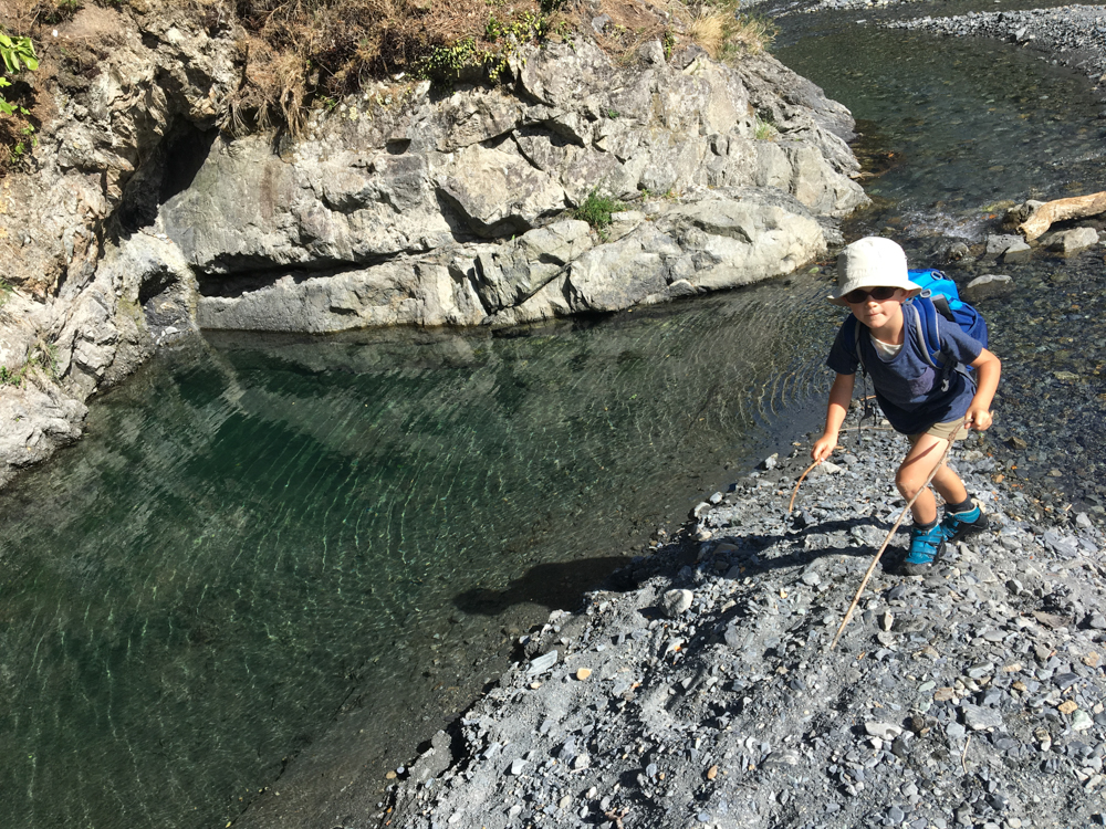 Jeudi, via une liste de diffusion dont je fais partie, nous apprenions que la Paua Hut etait disponible ce weekend pour ceux qui en voulaient. On l'a prise, en se disant: si ca degenere avec les enfants, c'est pas loin de la voiture, pas loin de Wellington, et on ne derangera personne. Samedi, nous sommes donc partis a 4 dans le Rimutaka, pour 3 heures de marche, dont une en riviere. Cosmo etait sur les epaules de Petit Papa, et le materiel pour toute la famille sur le dos de Gros Papa. Bien sur, Adan a mange cette "randonnade" sans probleme, et Cosmo a adore passer du temps en famille. Il a pionce un peu dans le sac, discute, observe la foret (qu'il caresse avec douceur), et bien rigole. La nuit venue, nous nous sommes tous couches sur la plateforme du bas du dortoir, et tout s'est bien passe (a part la respiration des enfants qui est plus fort qu'on pourrait le croire!). Seb et Adan ont meme ete convies a aller diner dans un refuge voisin pendant que Gros Papa s'occupait de Cosmo!