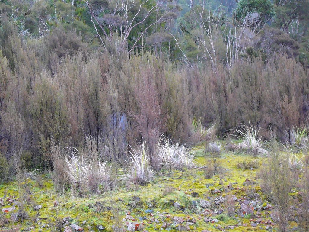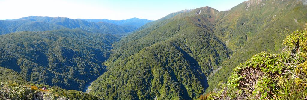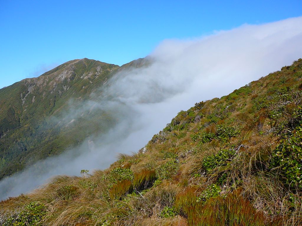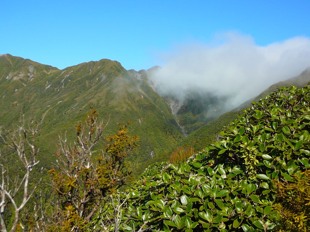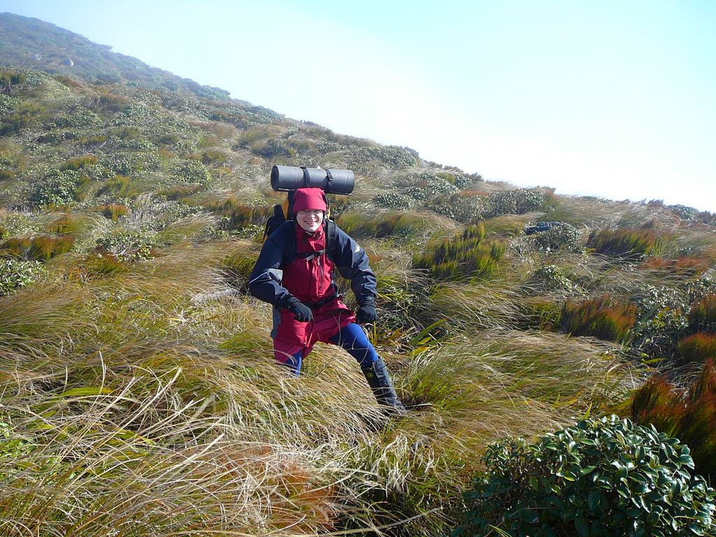 19. Nous devions rejoindre un refuge à l'autre bout de la vallée, en passant par la crête. A la place, nous le rejoindrons en longeant la crête de la colline, sur la gauche, puis en plongeant dans le bush pour rejoindre la vallée.
