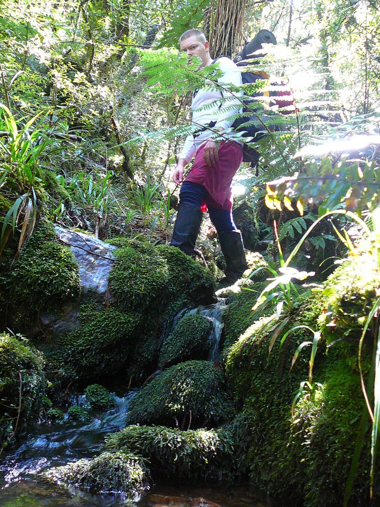 22. ... c'est entre les arbres, les fougères, le long d'un ruisseau de plus en plus important ... Après 1h30 pour parcourir 800 mètres ...