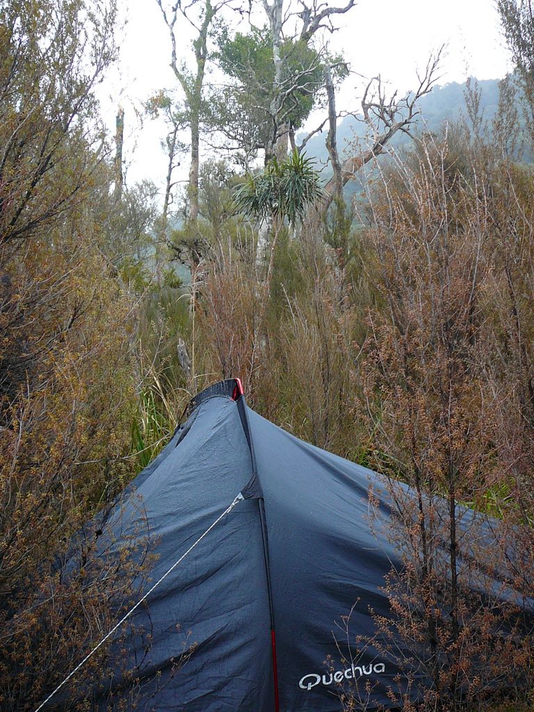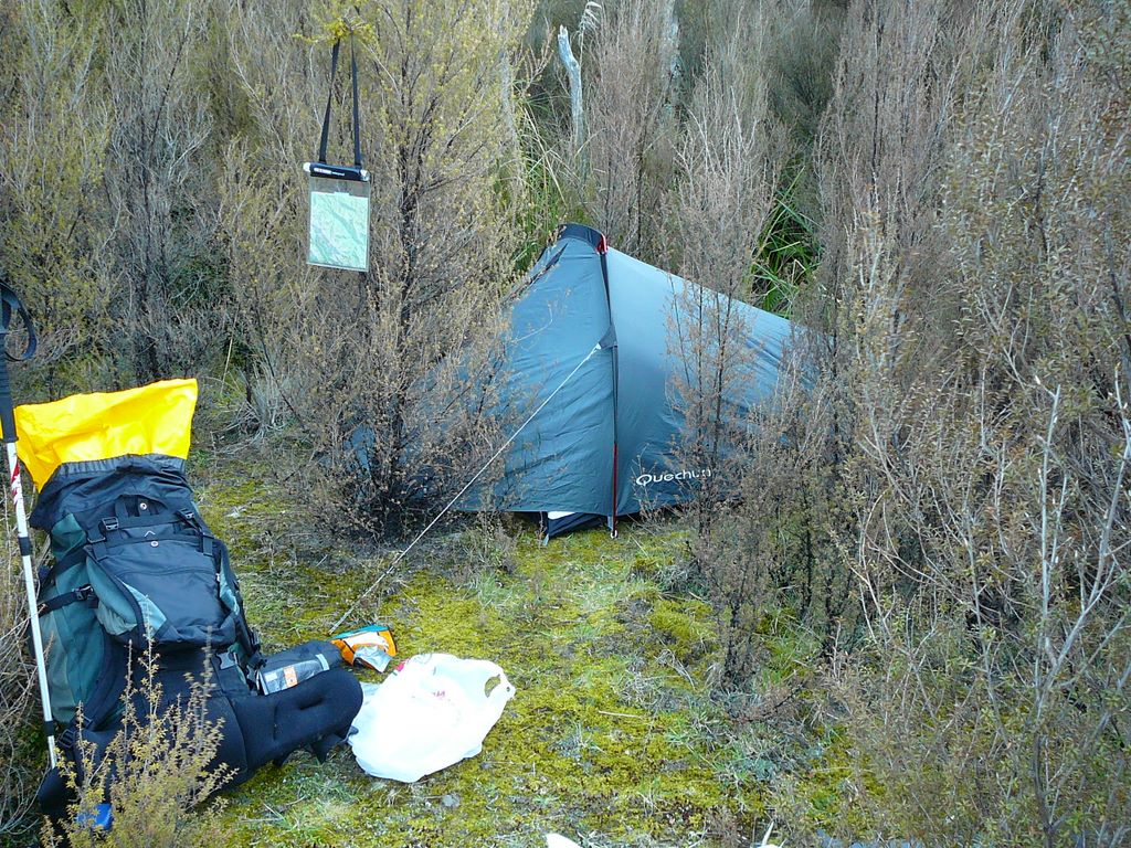 36. ... où chante une rivière! La tente n'a pas été épargnée, par contre, par la pluie.