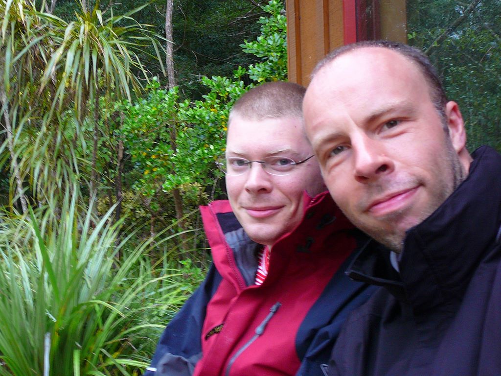 47. Face à la rivière, et regardant la pluie tomber, Seby et moi, fin heureux!
