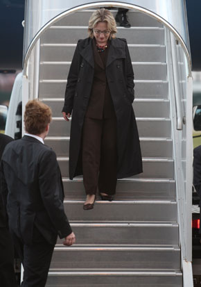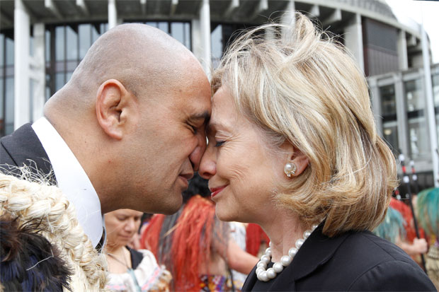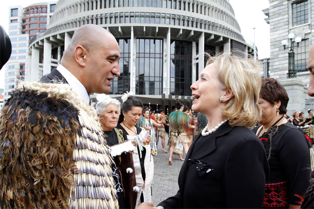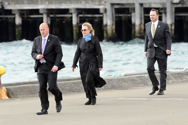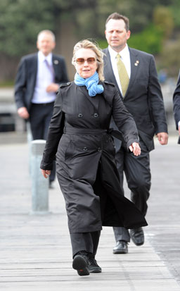 3. Hillary Cliton est accueillie par l'ambassadeur américain en Nouvelle-Zélande.