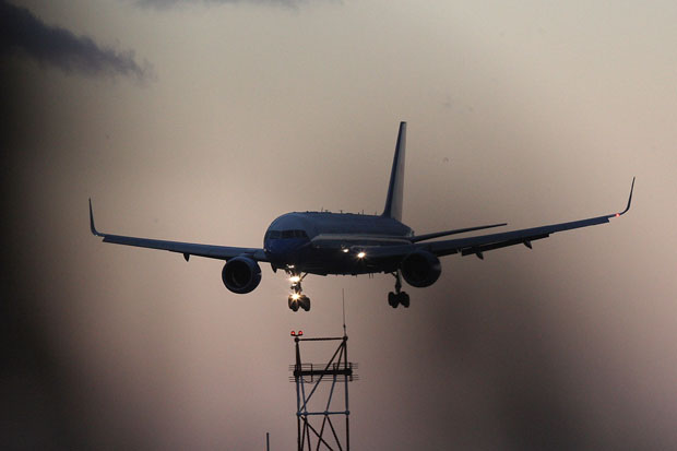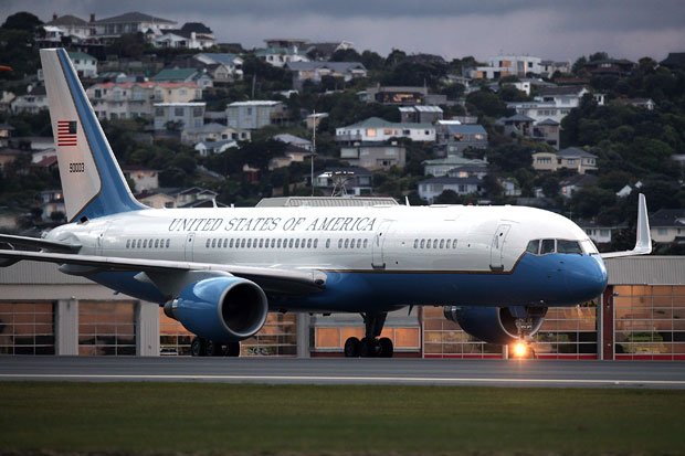 1. L'avion de la secrétaire d'état des Etats-Unis Hillary Rodham Clinton en approche finale à l'aéroport de Wellington.