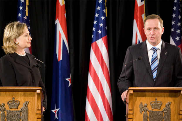 Hillary Clinton, la secrétaire d'état américaine, est venue en visite officielle en Nouvelle-Zélande, pour tenter de réchauffer les relations entre les deux pays. En effet, il y a 25 ans, la Nouvelle-Zélande souhaitant rester un état "nuclear free", avait refusé qu'un bâtiment américain nucléaire entre dans leurs eaux territoriales. Depuis, les relations étaient un peu fraiches, et les deux pays ont essayé de tourner la page, au travers de "la déclaration de Wellington". Les Etats-Unis espèrent ainsi emporter une large adhésion à leur projet d'espace commercial transpacifique, incluant 7 pays, dont la Nouvelle-Zélande.