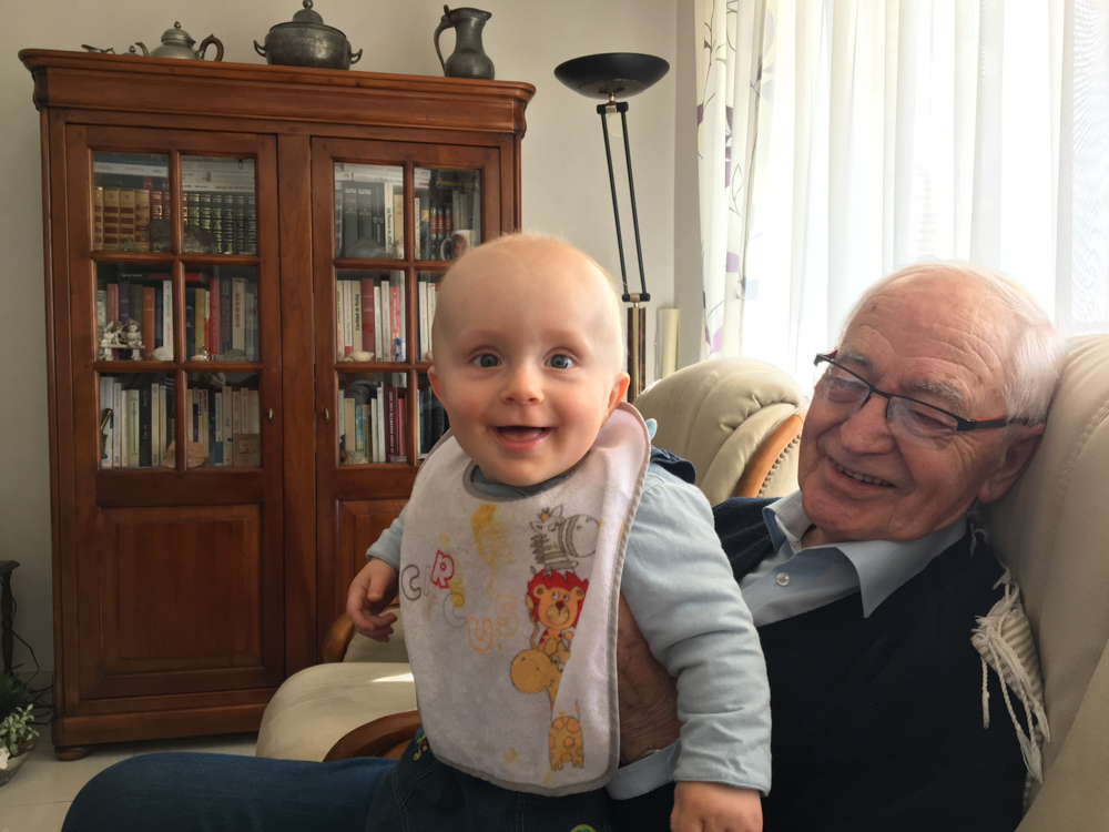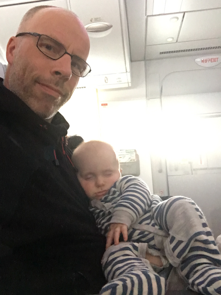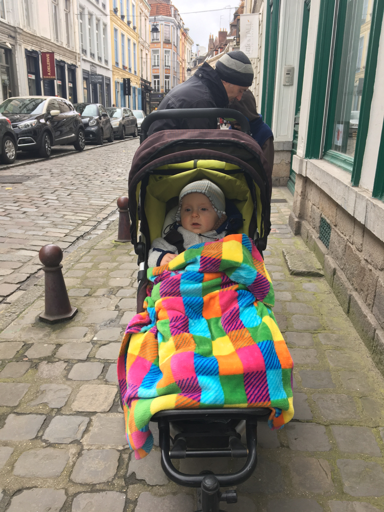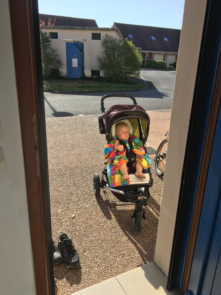 14. Il s'endort même dans les bras de Gros Papa peu de temps avant l'arrivée à Paris.