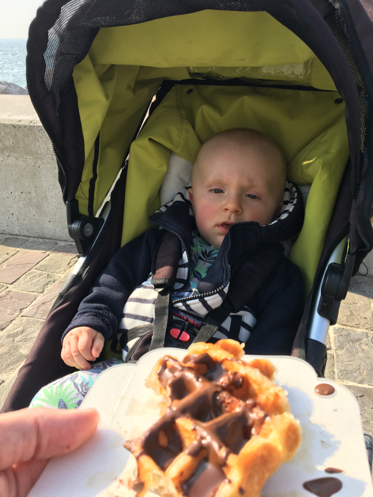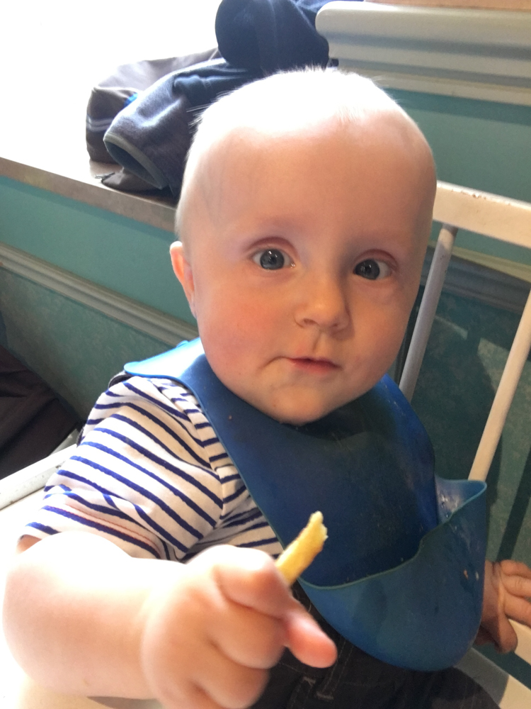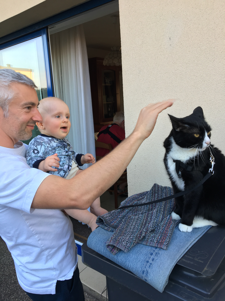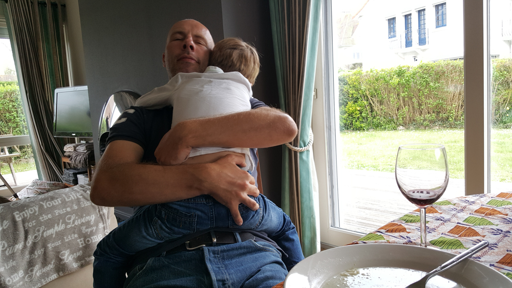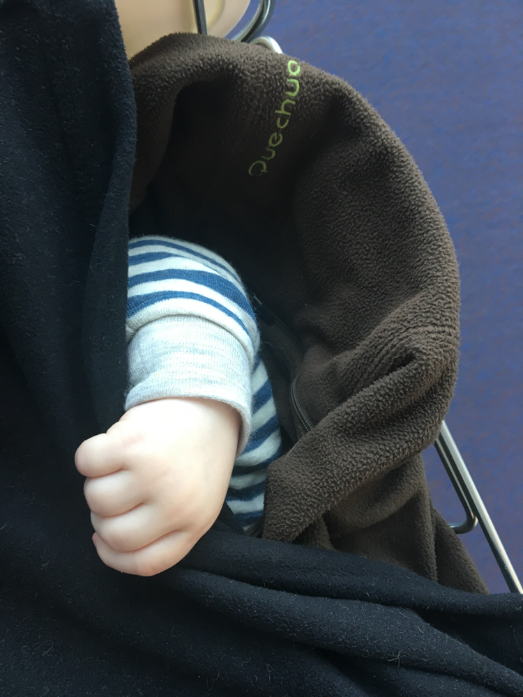14. Il s'endort même dans les bras de Gros Papa peu de temps avant l'arrivée à Paris.
