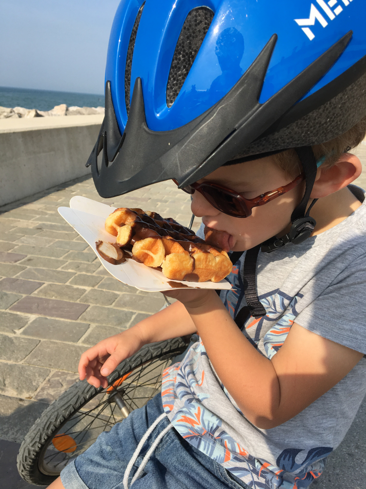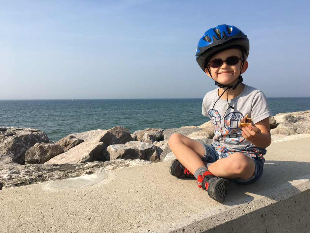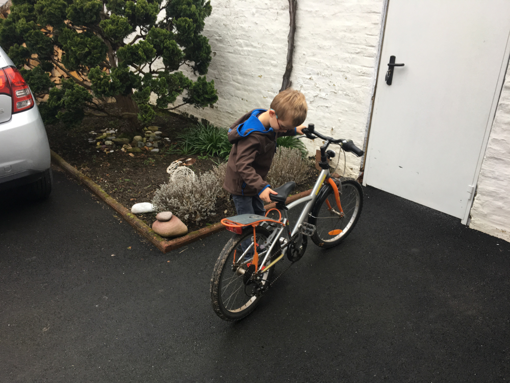 21. Le vélo qu'Adan usera jusqu'à la corde pendant les vacances: un cran au dessus du sien à la maison, avec béquille, vitesses, et freins sur les deux roues!