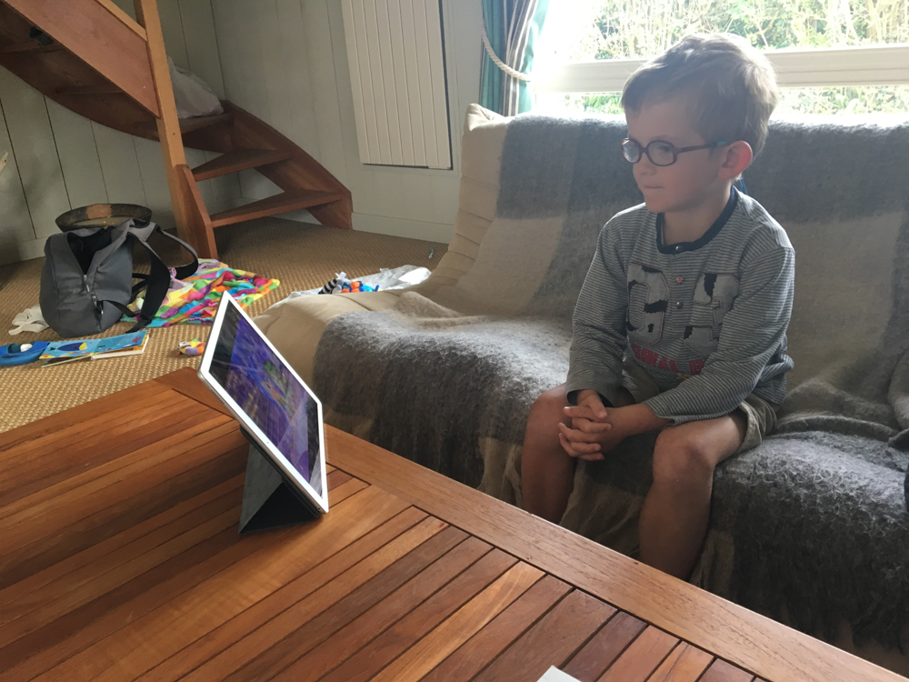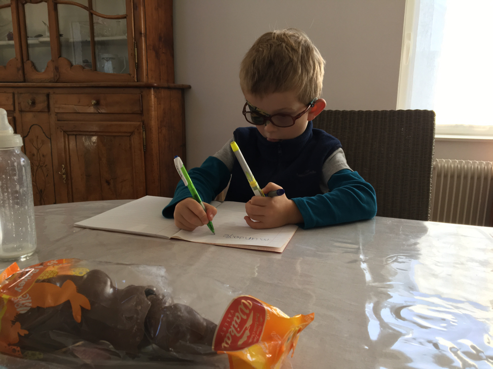 194. Wissant. Adan lit, en Français, le récit de sa journée qu'il a écrit ... en Anglais.