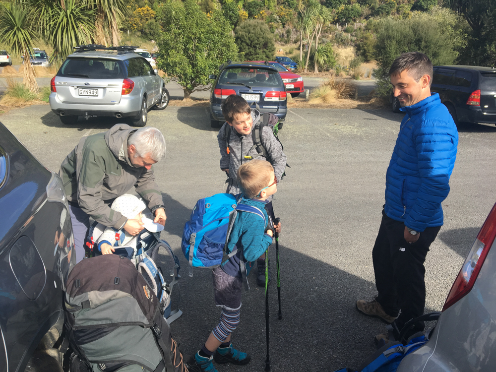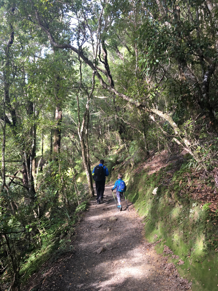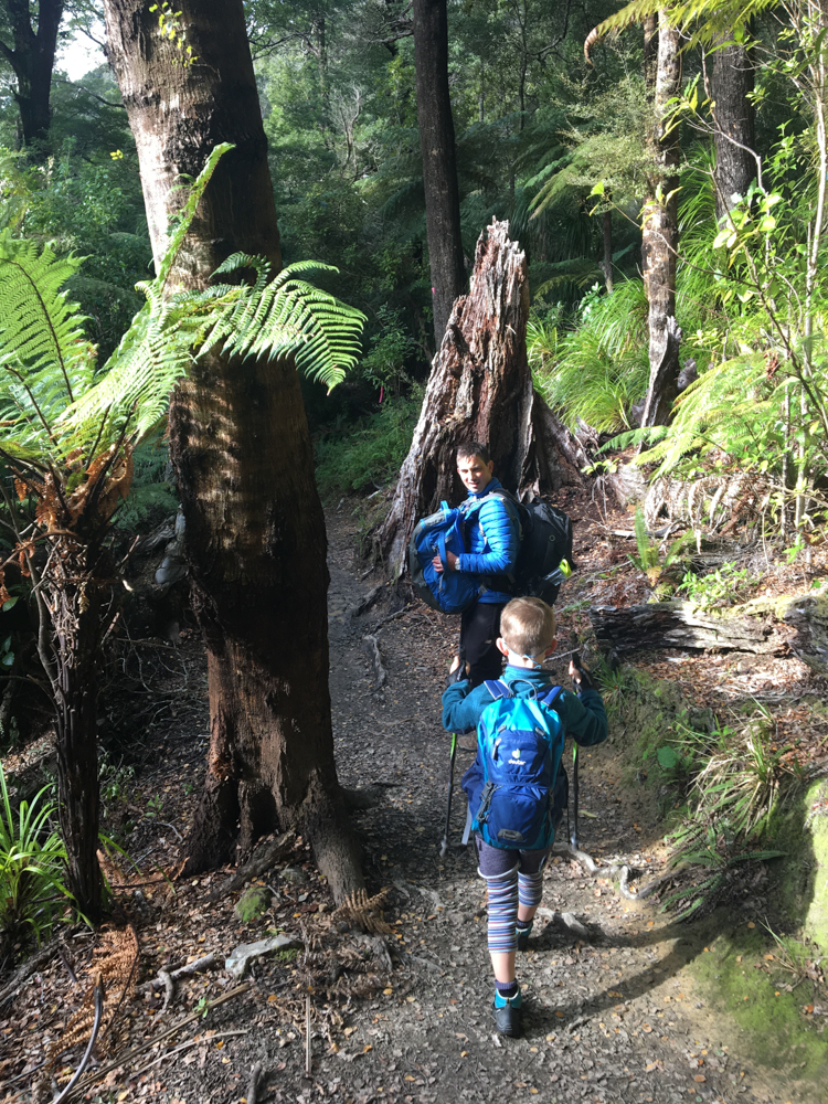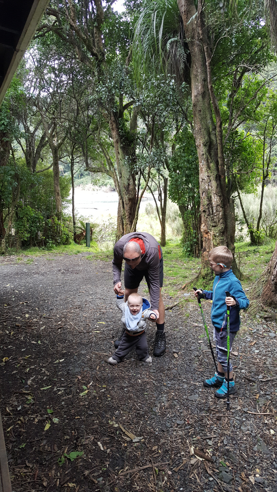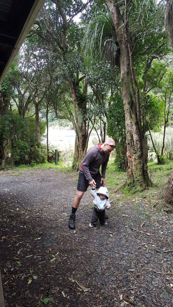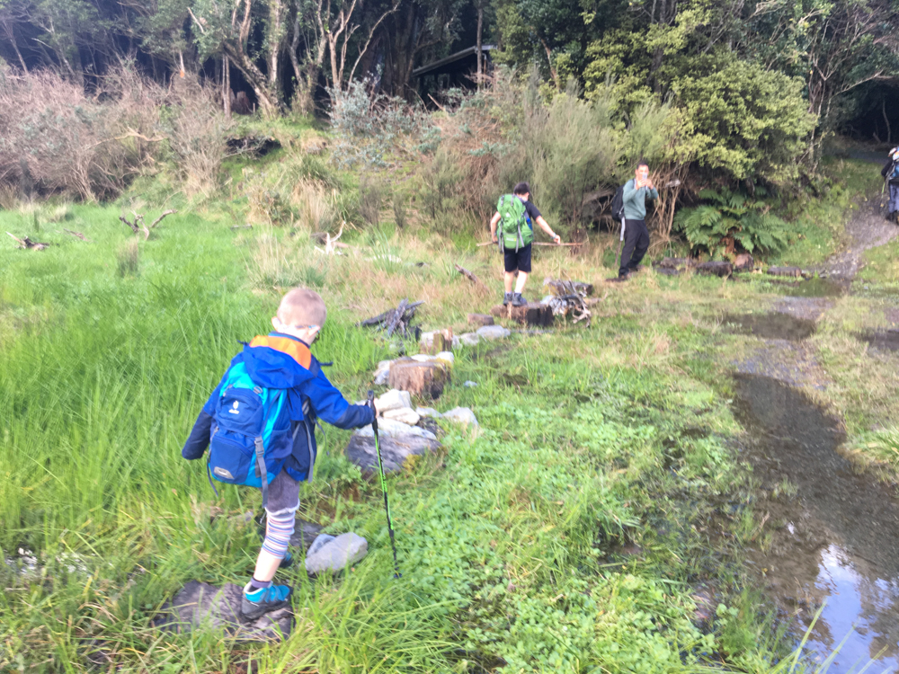 J'avais réservé ce refuge il y a très longtemps, étant tombé par chance sur un samedi soir de disponible (ce genre de refuge, dans le Rimutaka, est très prisé et les samedi soirs sont tous pris pour au moins 6 mois!). Nous sommes partis à 4, accompagnés de Ronan et de Jakeb. Deux heures aller le samedi, autant le dimanche. Bref, une jolie promenade dans le bush pour tout le monde.