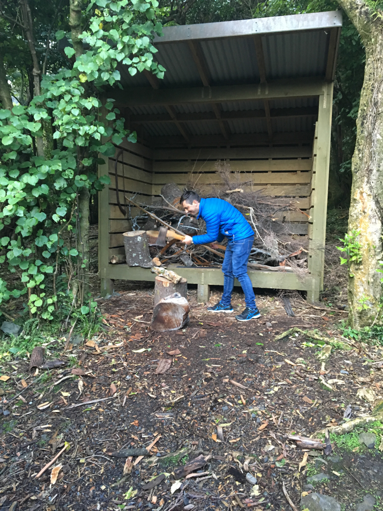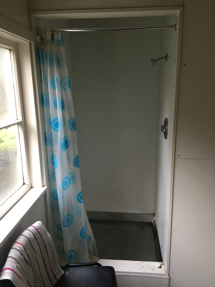 40. Une première: une douche dans un refuge! Du jamais vu, avec de l'eau chaude ... chauffée par la cheminée!