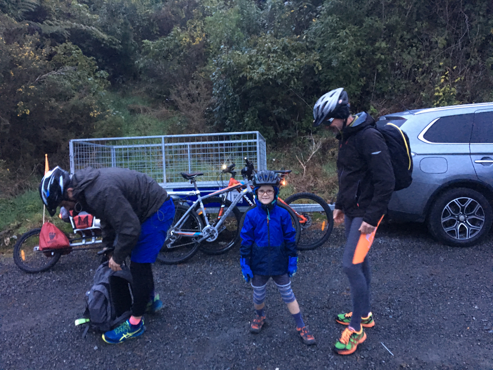 On en avait parlé au mois d'Avril, et on l'a fait: profitant de la visite de Xavier à Wellington, nous avons fait une bonne partie du Rimutaka Cycle Trail. Adan a tenu absolument à se joindre, et à part les projections de boue, a passé une super moment. Levés 4h pour un départ de la maison à 5h. La voiture retour était déposée à 6h et nous sommes montés en selle à 7h. 85kms plus tard, vers 16h30, nous avons rejoint la voiture de Lolo, fourbus mais contents. Il a fallut récupérer ma voiture et sa remorque, puis revenir chercher les vélos avnt de pouvoir rentrer à la maison. Résultat, Adan et moi n'avons pas pu nous doucher avant 20h, mais ça nous a fait beaucoup d'histoires à raconter. Merci à Seb et Cosmo de nous avoir laissé faire ça!