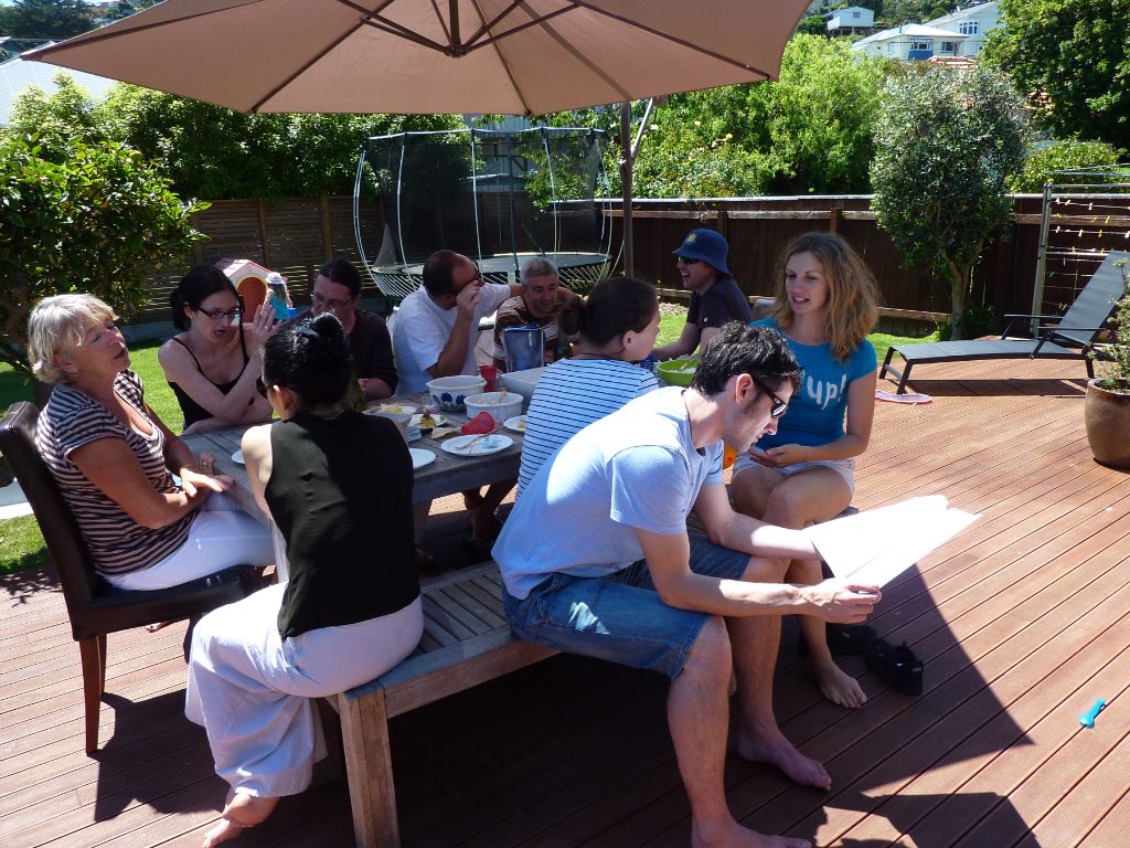 Encore une super idée de Greg et Lydie: inviter un groupe d'amis un jour de super beau temps avec comme consigne de ramener un plat selon le thème du jour: l'Asie. Très convivial, super compagnie, super journée!