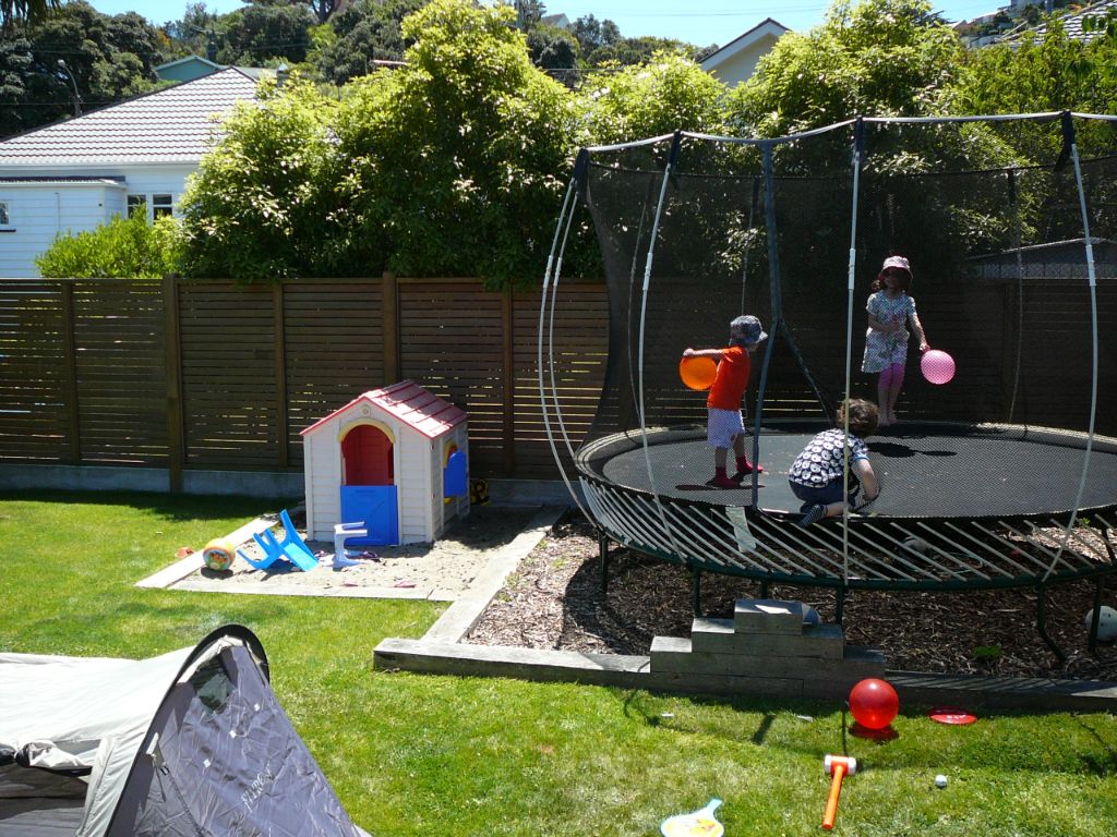 16. Pendant que "les grands" discutent, les enfants s'éclatent dans le trampoline.