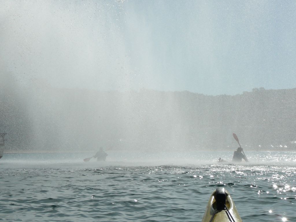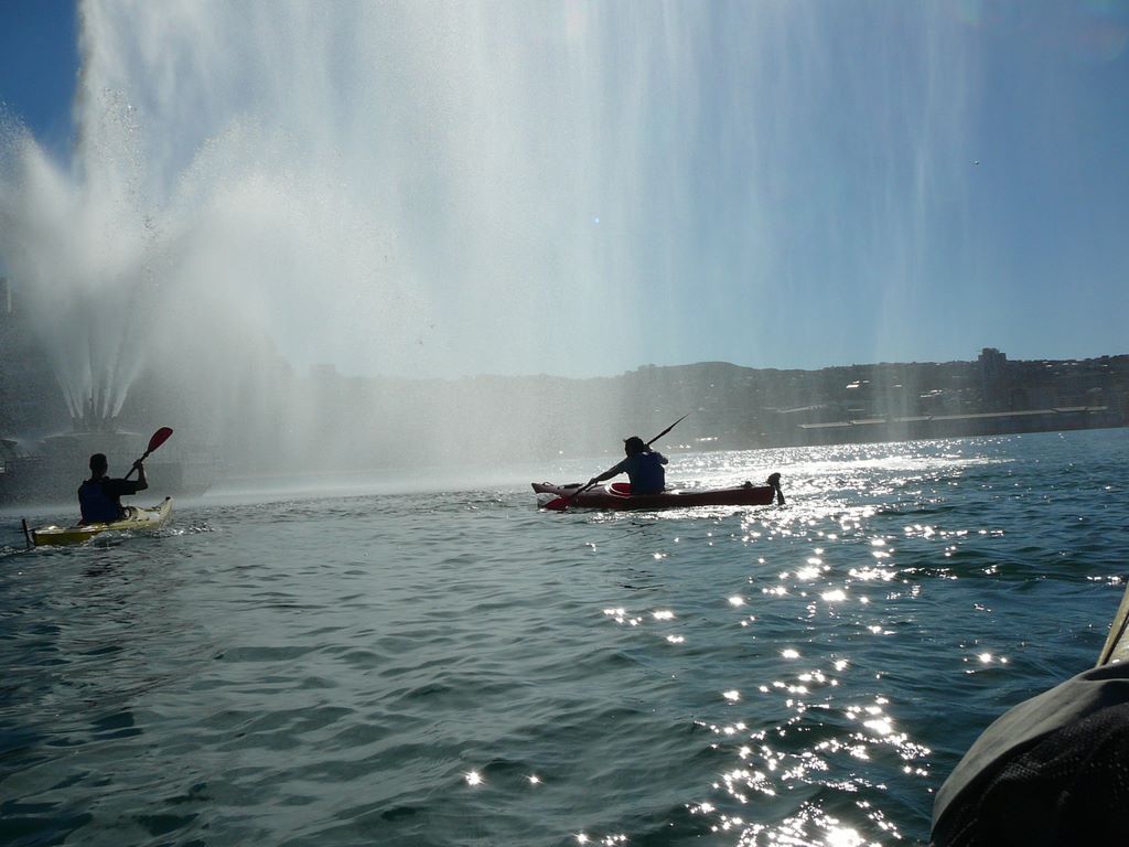 21. Sur l'eau, il y a aussi quelques voiliers, mais vu le peu de vent, c'est les kayaks qui vont plus vite aujourd'hui!