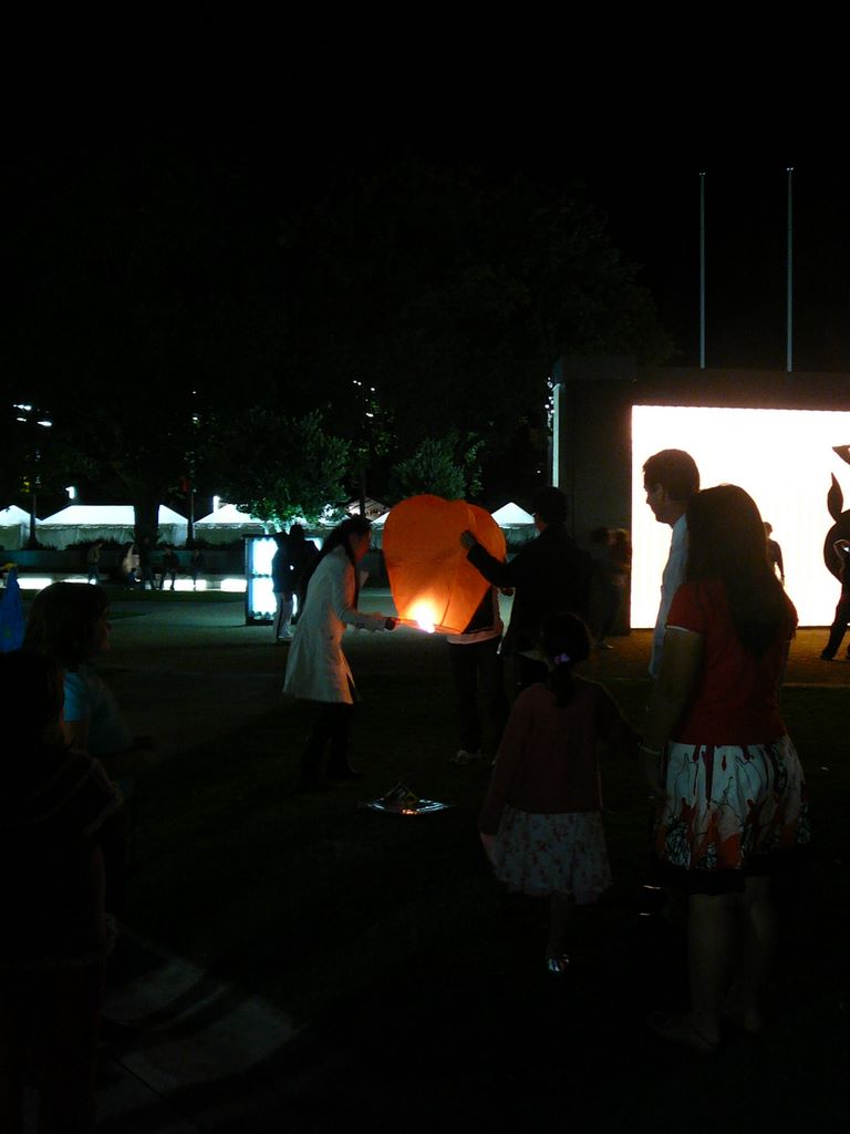 6. ... en 1986, on avait fabriqué des montgolfières en papier crépon comme celle-ci, qui finit par s'envoler et devenir un point dans le ciel.