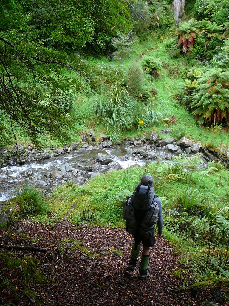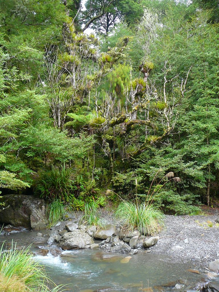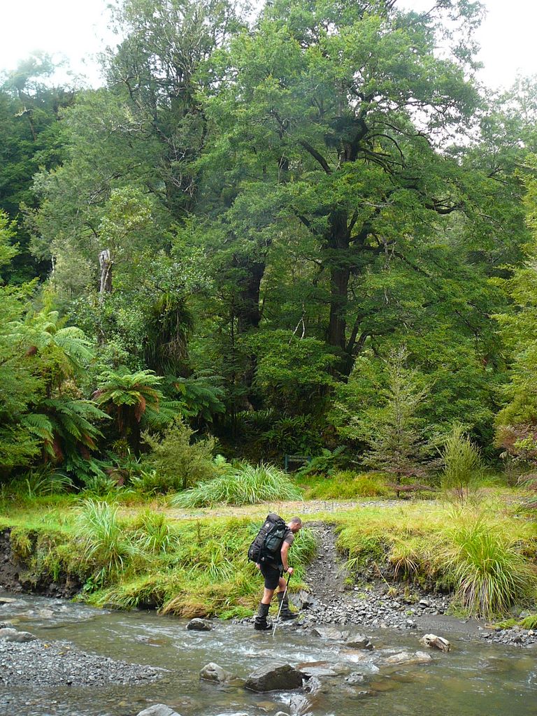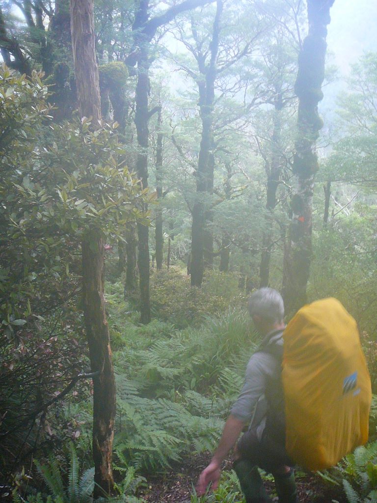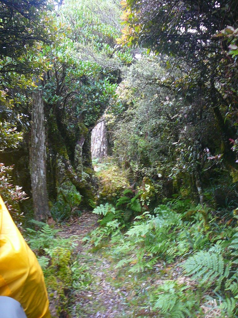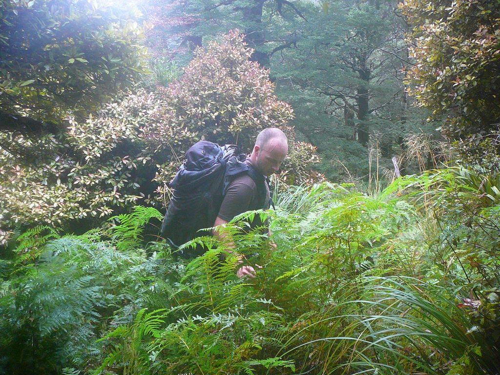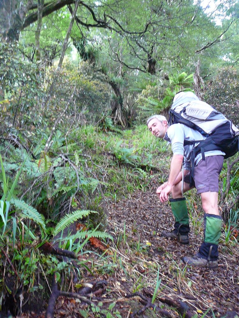 38. En comparaison du Tararua, la végétation est ici encore plus sauvage, plus "jungle". S'ajoutant à la forêt dense, la pente ...