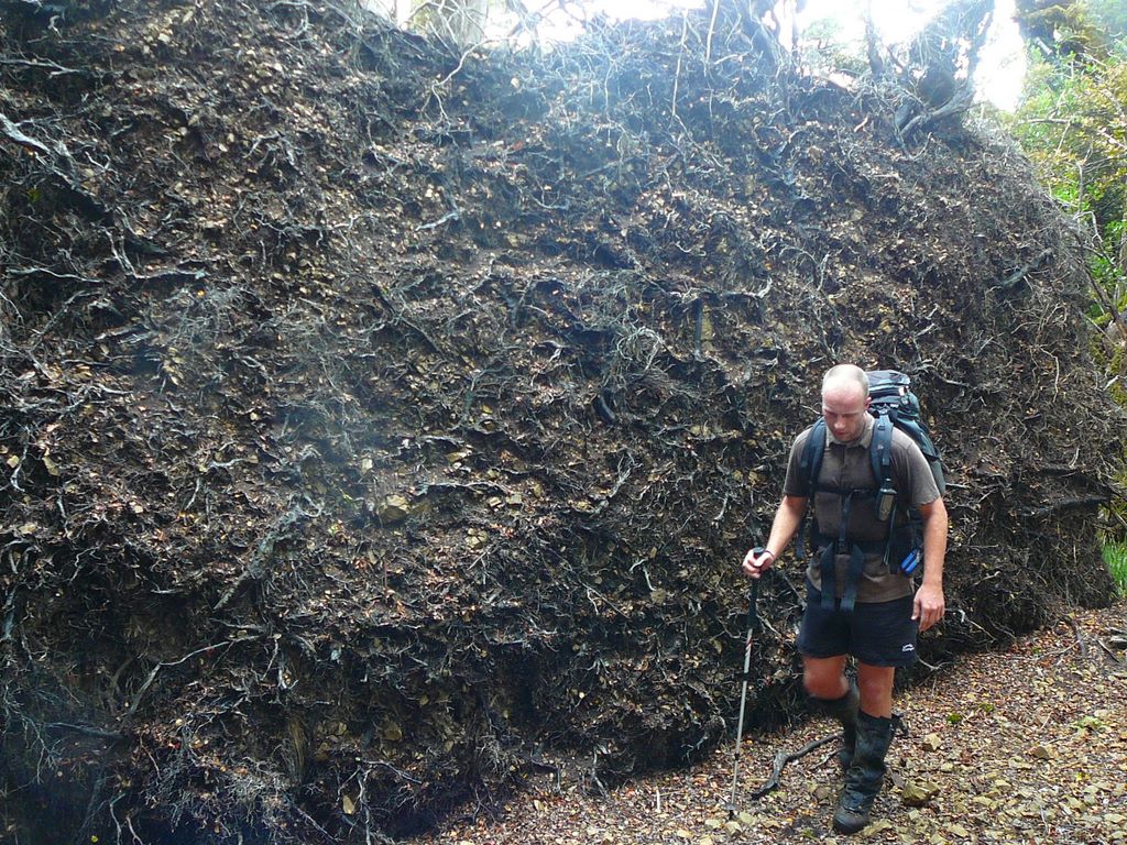 15. Un arbre a été déraciné lors d'une tempête. Je marche ici sous ses racines!