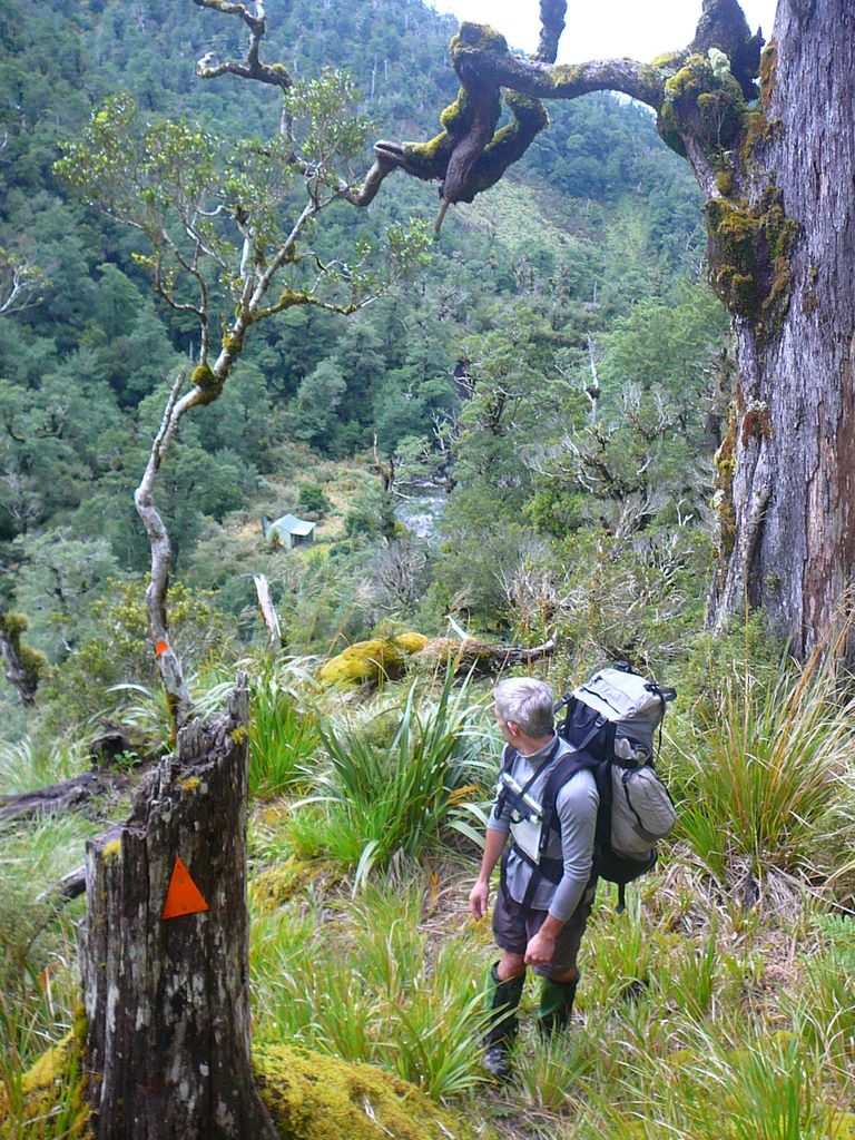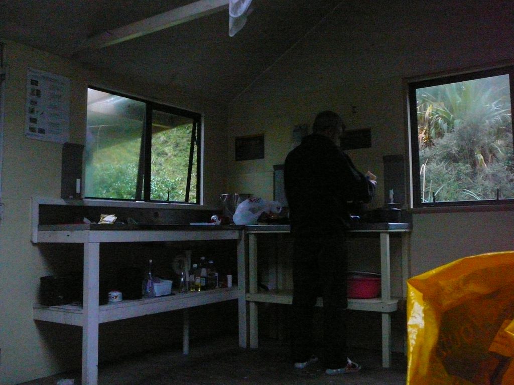 55. La "Leon Kinvig" Hut, vue du sentier, en remontant. Les premiers 200 mètres de dénivelés sont aussi durs à monter qu'ils l'ont été à descendre hier soir.