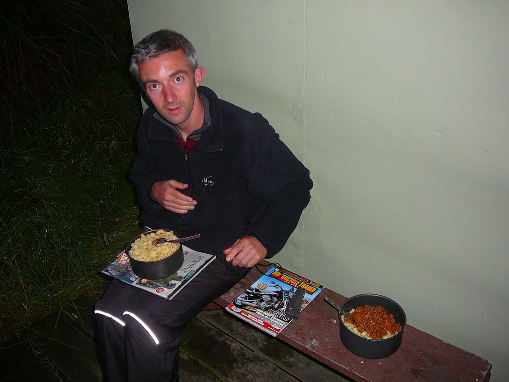 47. Nous mangeons sur le "deck", abrité de la pluie.