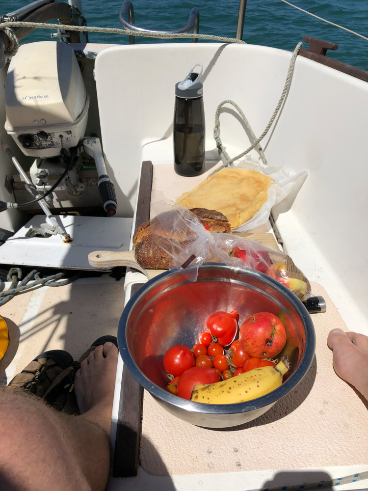 En 2018, nous n'avons pas navigué une fois. Maintenant que nous avons un gilet de sauvetage pour Adan et que Cosmo est un peu plus grand, nous avons enfin pu ressortir sur l'eau. Une première à quatre, une première pour Cosmo.