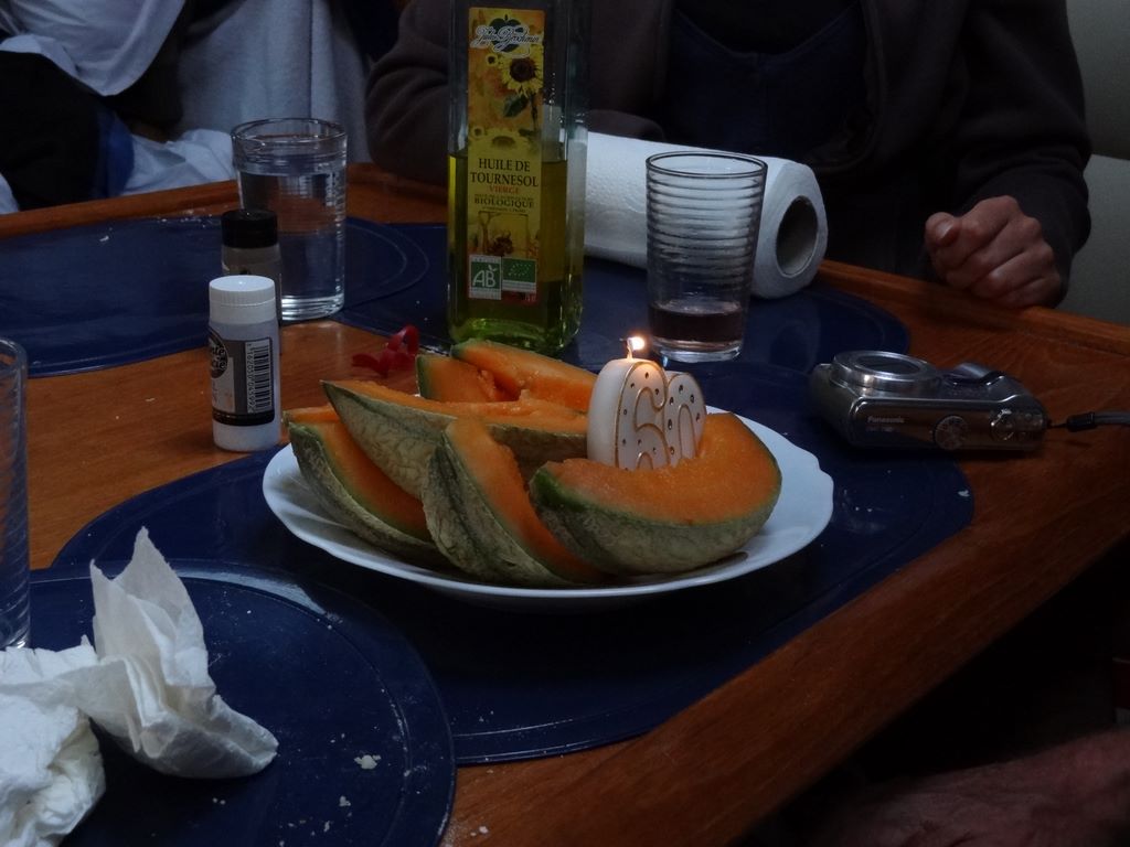 60. On n'a pas vraiment eu le temps de cuisiner un gateau d'anniversaire, alors on fait avec le dessert qu'on a!!!