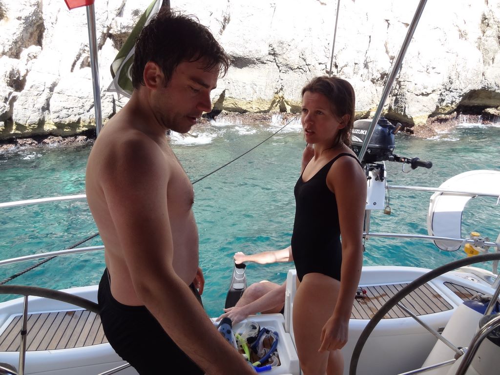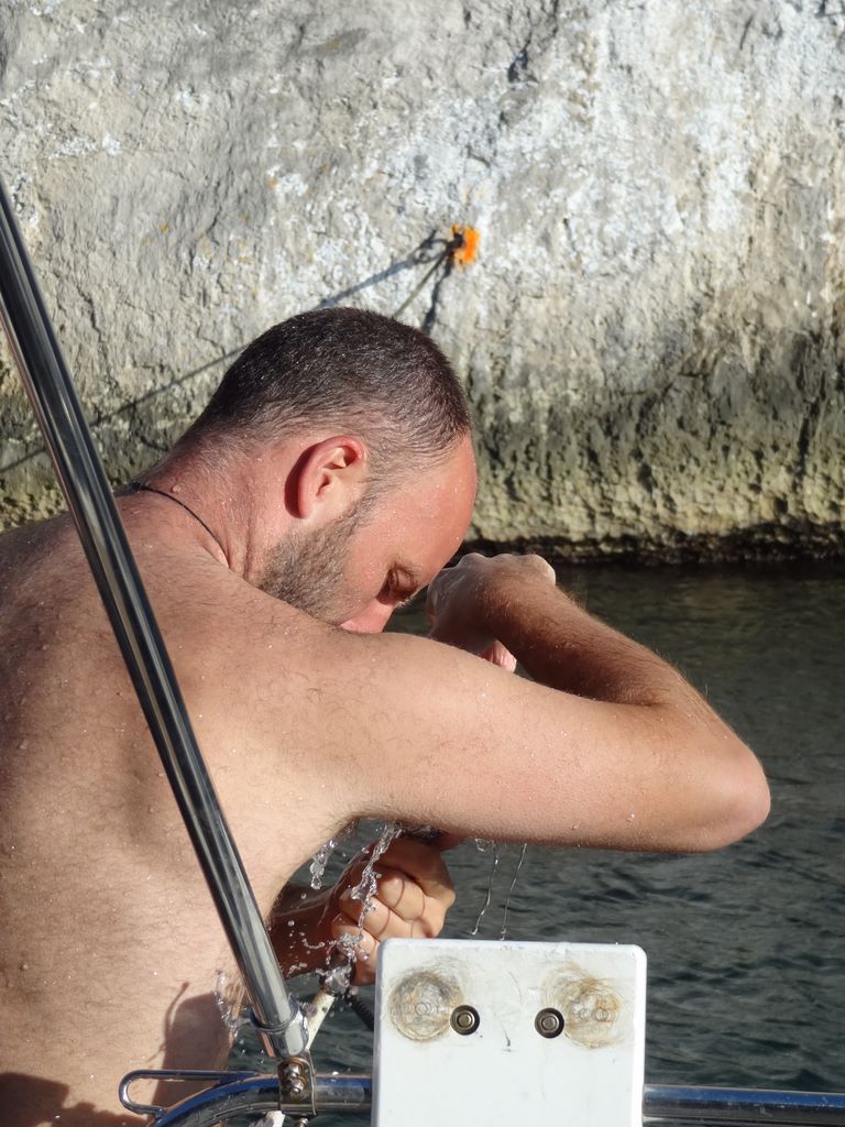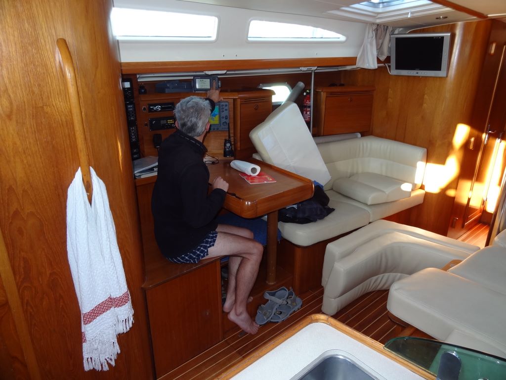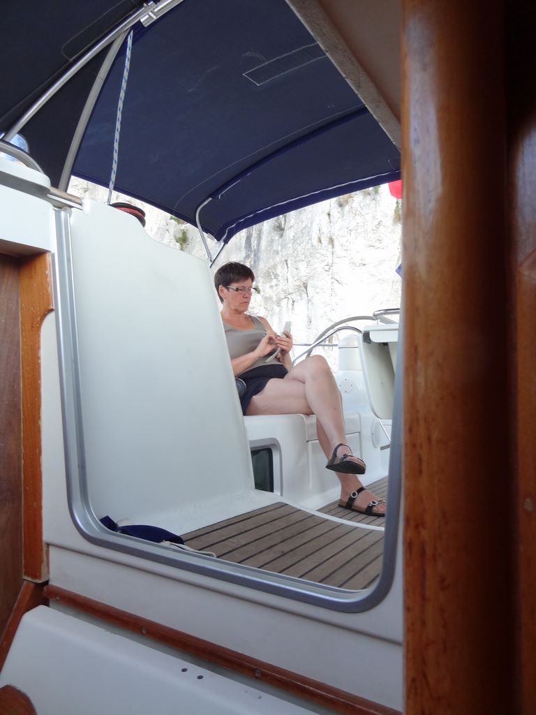 91. ... et on recharge les batteries. Mais au moment de partir, pas moyen de rallumer le moteur, essentiel pour les manoeuvres d'appontage du soir!!!!! On contacte donc le loueur et convenons ...
