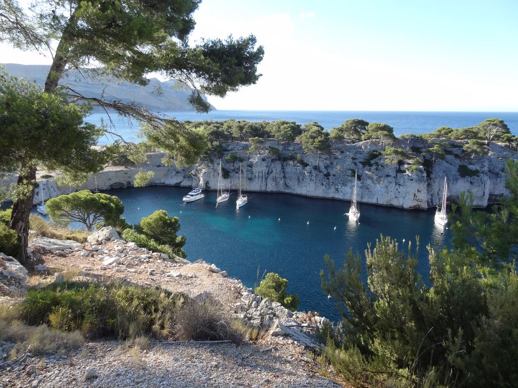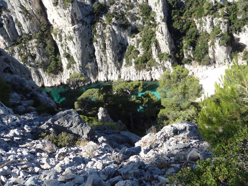 208. La calanque d'En Vau, vue d'en haut, et qui commence à se remplir.