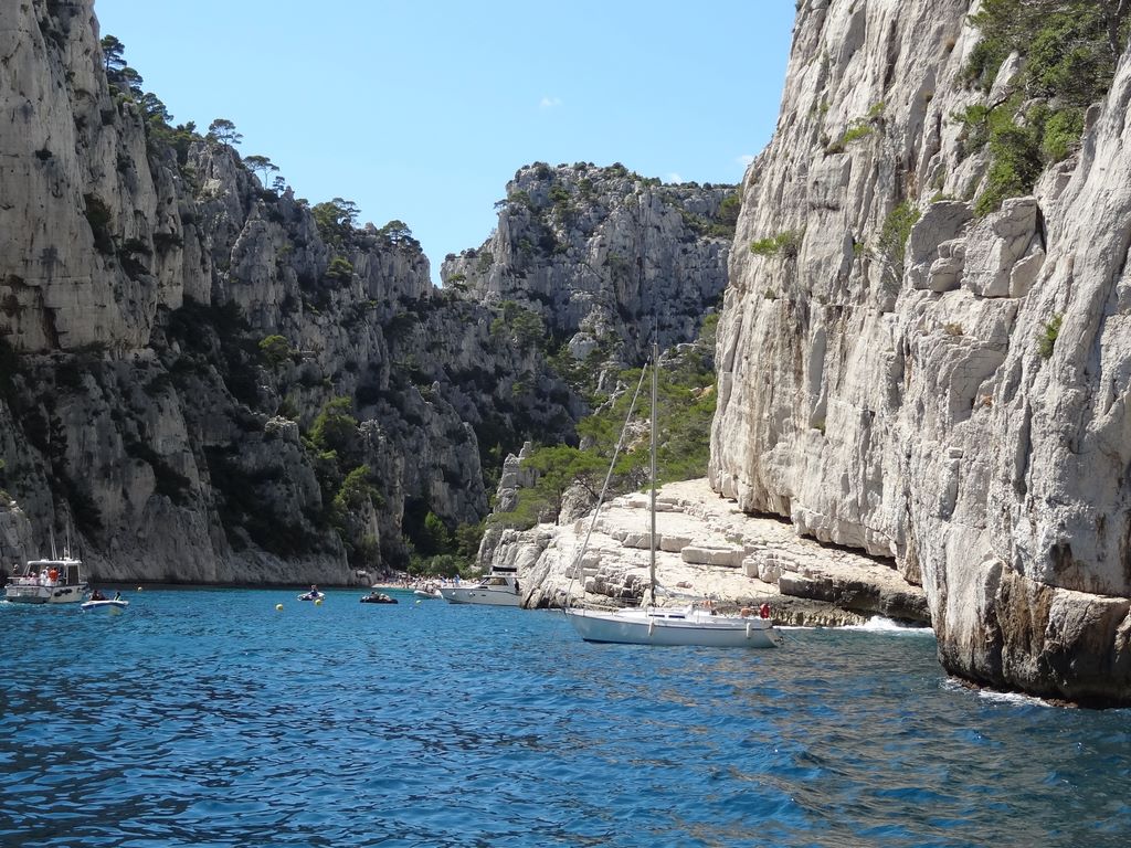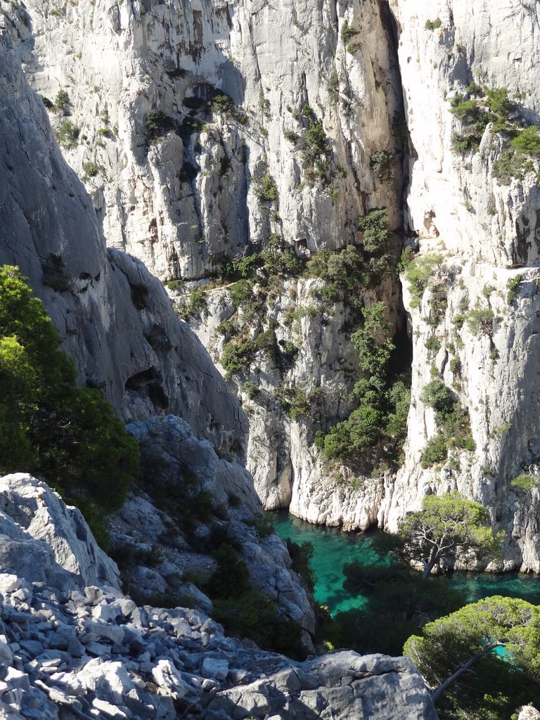 217. L'eau est toujours aussi froide, mais on en profite quand même: la paroi de la calanque ...