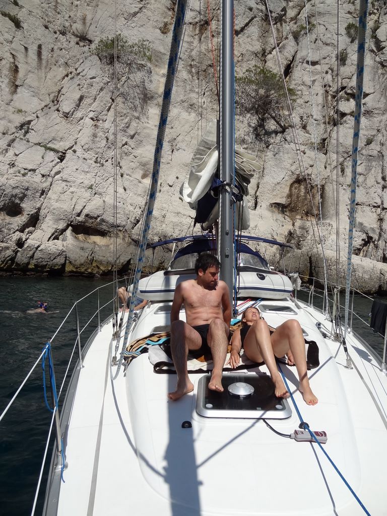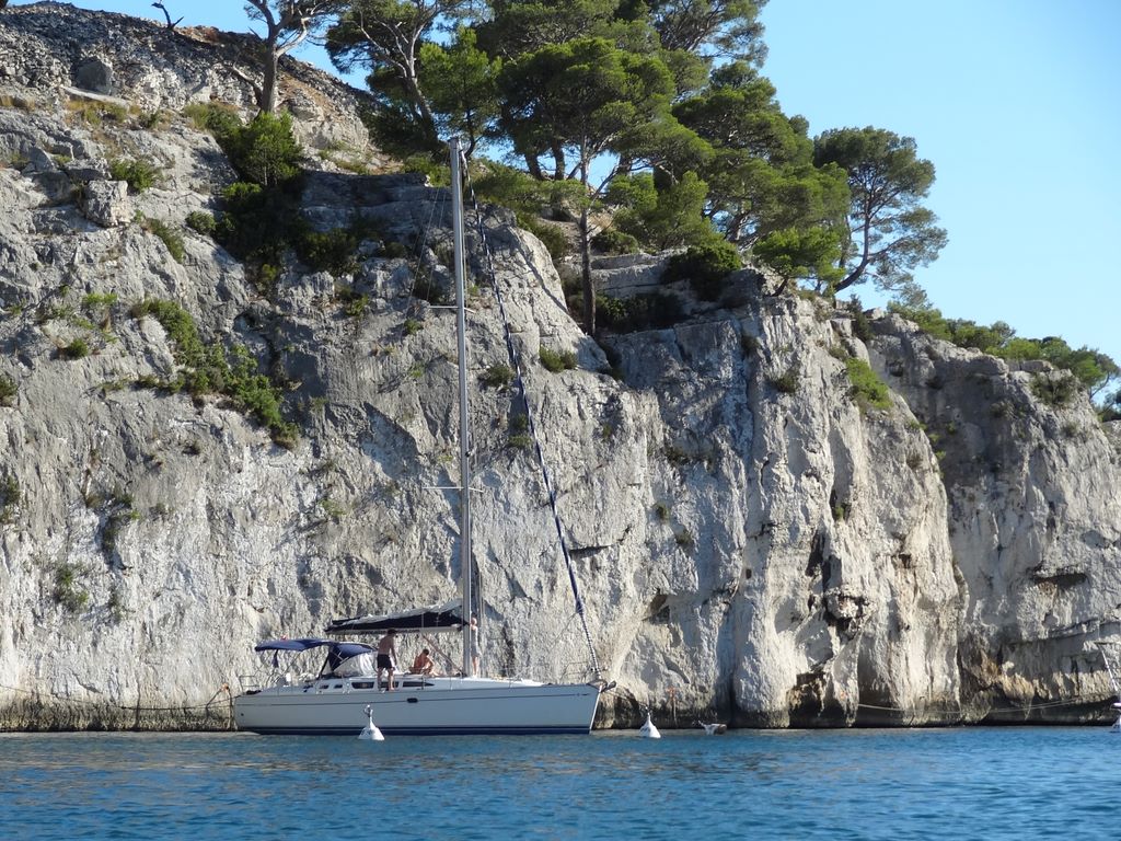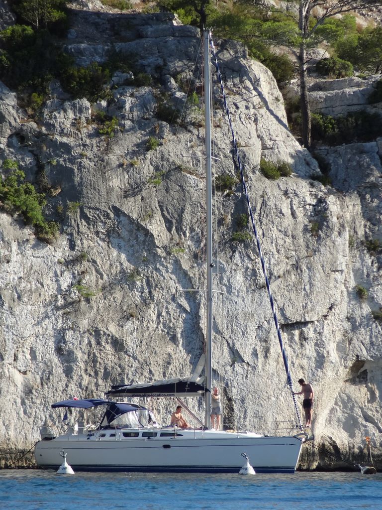 Le cadeau d'anniversaire de papa était une semaine à bord d'Anne de Bretagne, un Sun Odissey 43, de 13 mètres donc. Nous sommes partis de St Mandrier, passés par les Embiez, la Ciotat, Cassis et ses calanques avant de revenir à notre port de départ ...