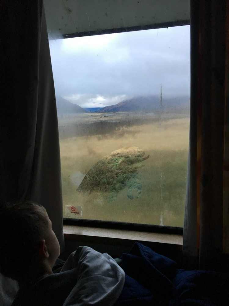 1. A Bealey hotel. Il est lundi matin, et on se réveille doucement depuis notre chambre d'hotel en découvrant le paysage.