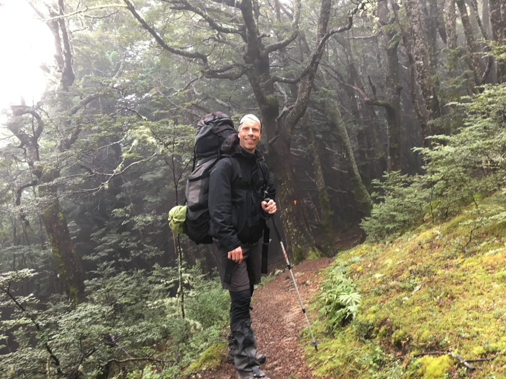 13. Au matin du premier jour, on escalade le Lagoon Saddle, premier col de la randonnée et premire col d'Adan: il a hâte d'en découdre!