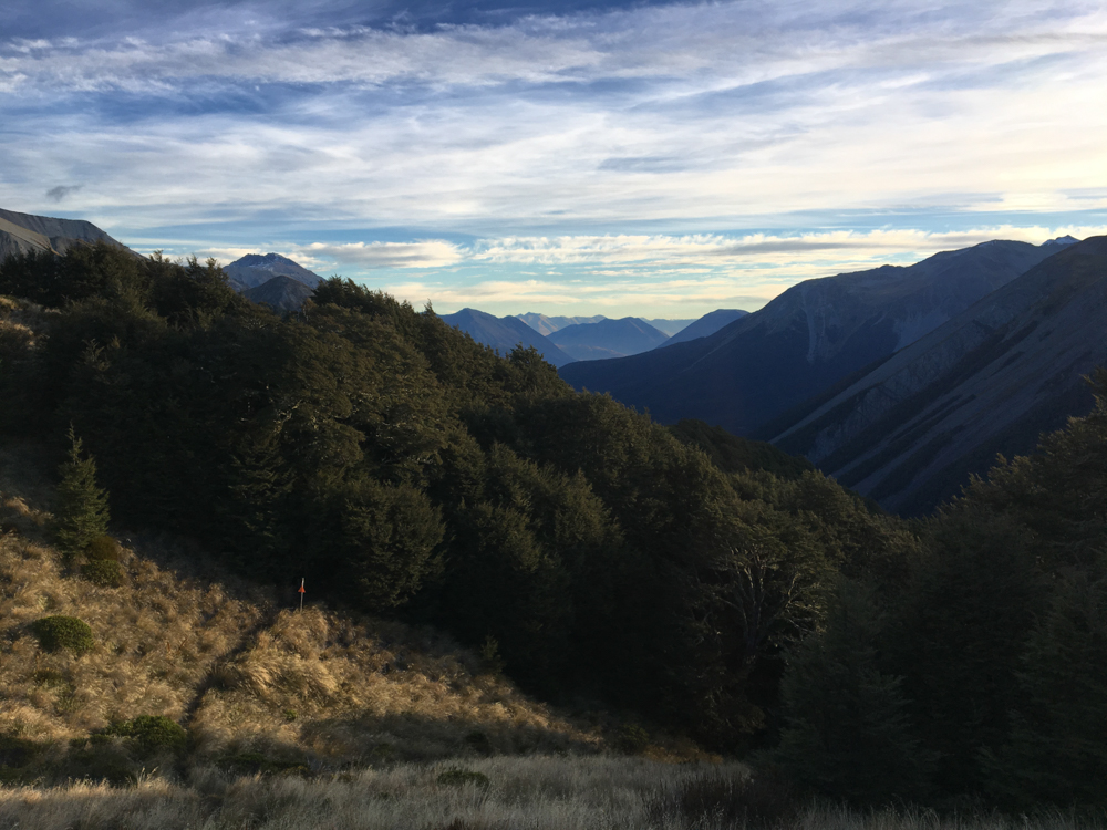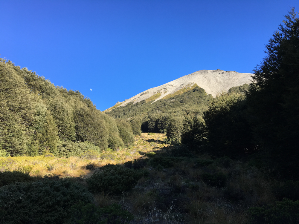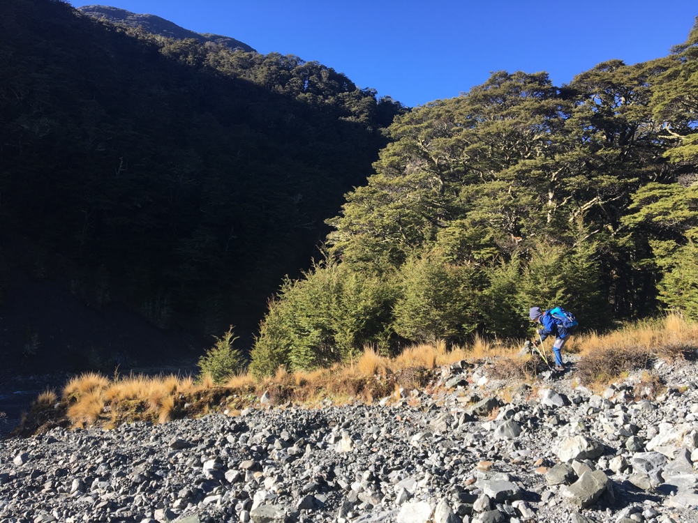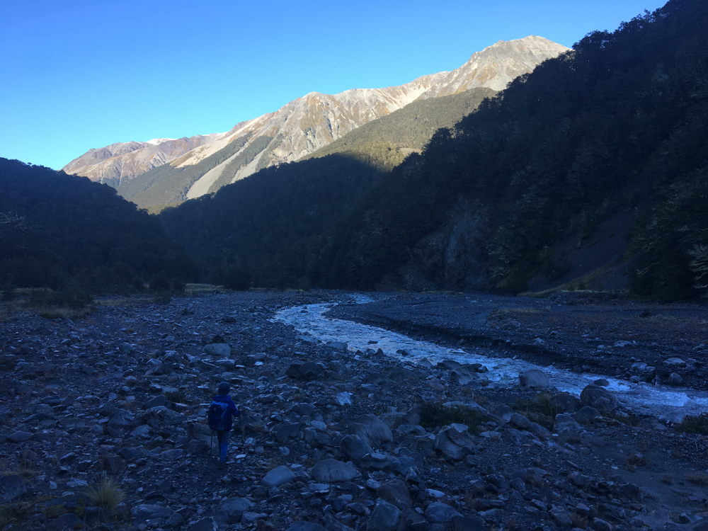 51. En laissant Hamilton Hut au loin à gauche, on commence à remonter Hamilton Creek avec l'intention de camper aux pieds du prochain col, le Cass Saddle.