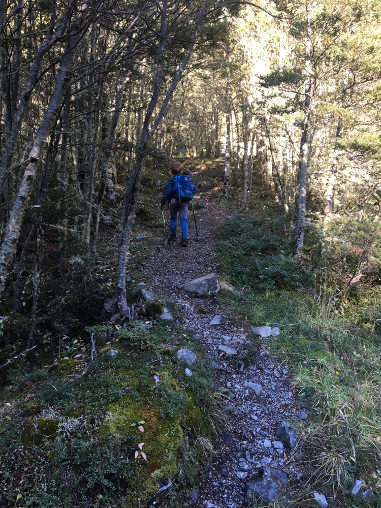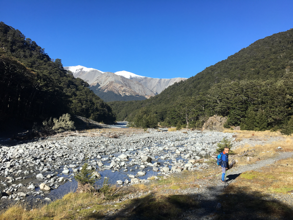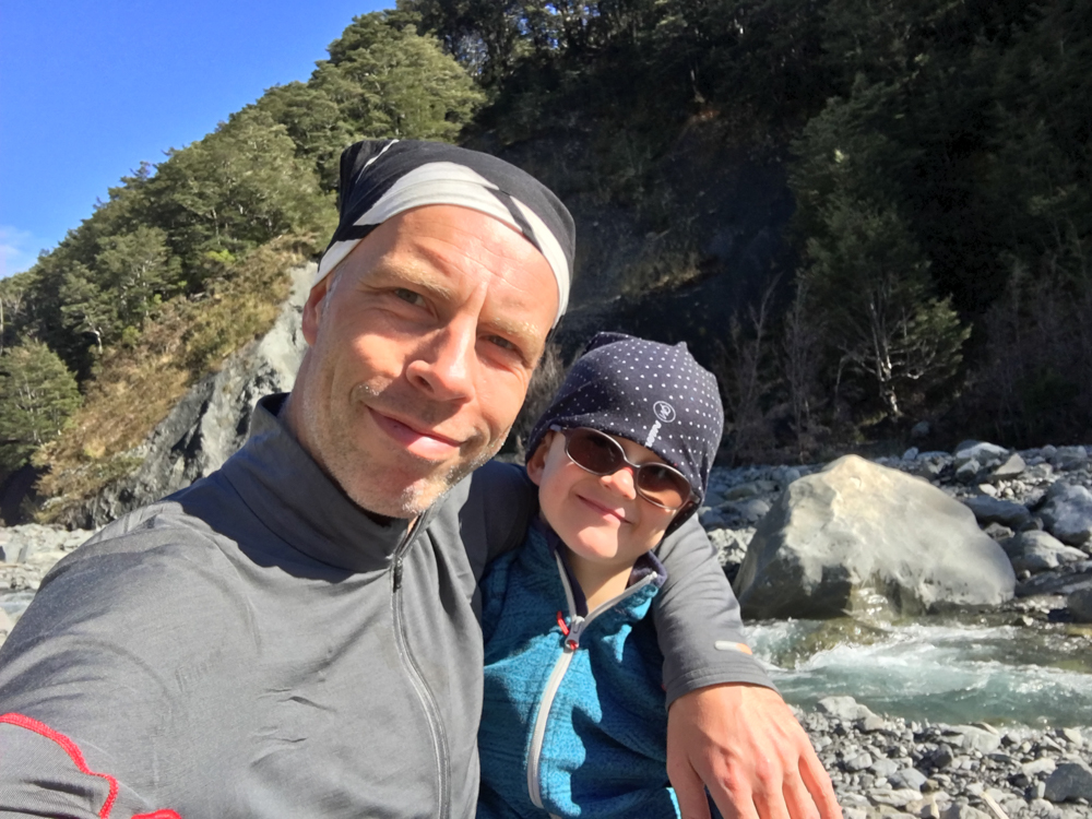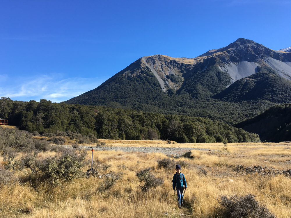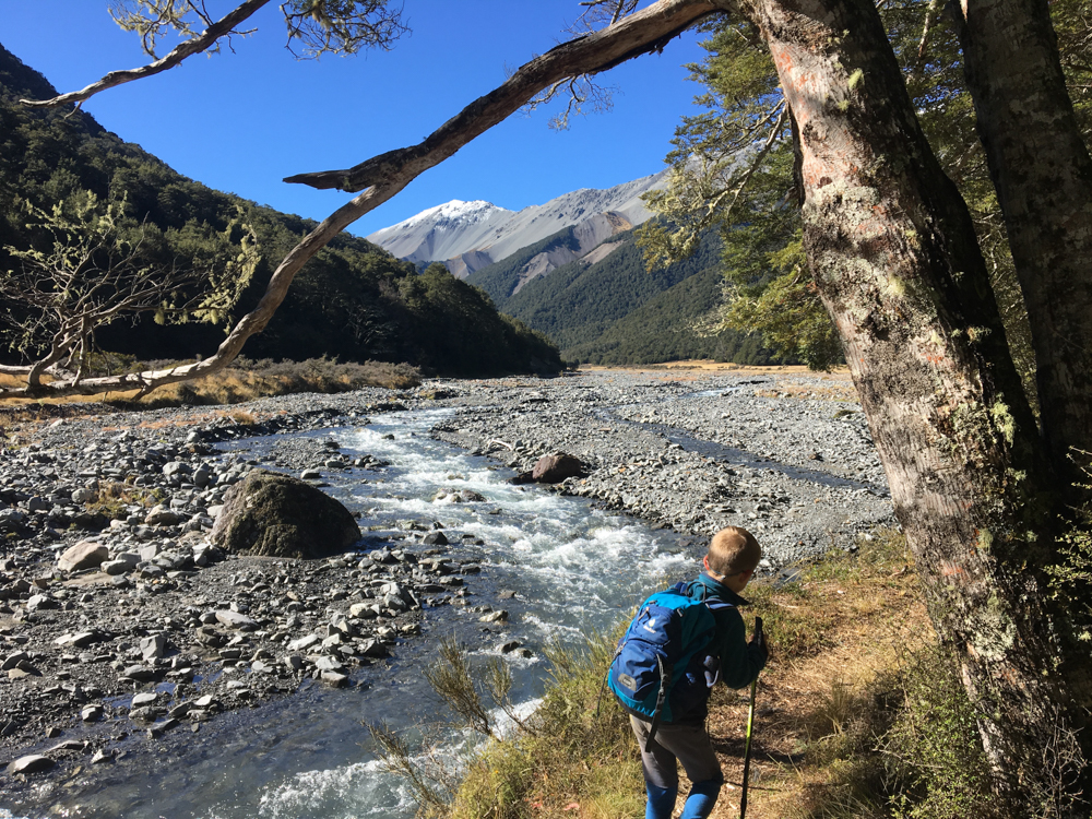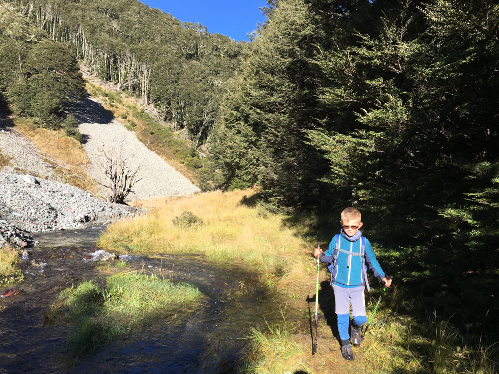 Pour Pâques, Adan et moi sommes partis faire une randonnée de trois jours dans la région d'Arthur's Pass. C'était un challenge pour moi que j'ai réalisé sur le tard: ce serait la première fois que je partirais en rando "seul", ou du moins seul à la barre. Avec Adan. En tente. J'étais donc un peu en alerte quand nous sommes partis, mais tout s'est super bien passé, aidés par un temps magnifique et un Adan extraordinaire, qui a mangé les 33kms de cette rando sans se plaindre, au contraire.