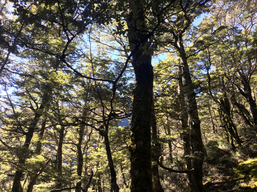 43. Au milieu de cette photo, en contrejour, un des nombreux fantails et robins qui nous ont accompagnés.