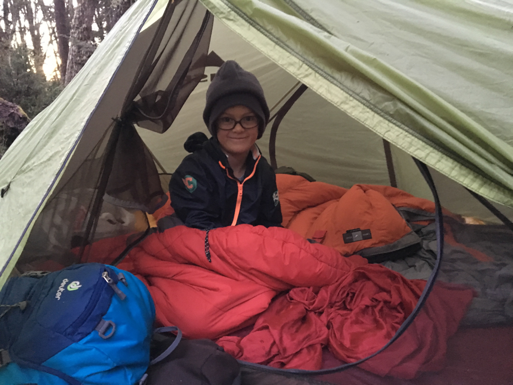 72. Adan aide à secouer la tente. Comme on a bien marché la veille, Adan m'a fait promettre qu'on se lève un peu plus tard aujourd'hui. Faveur bien évidemment accordée!