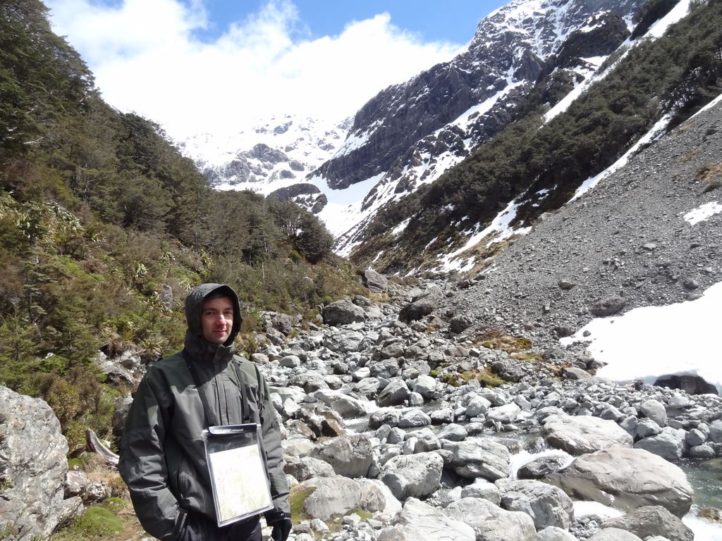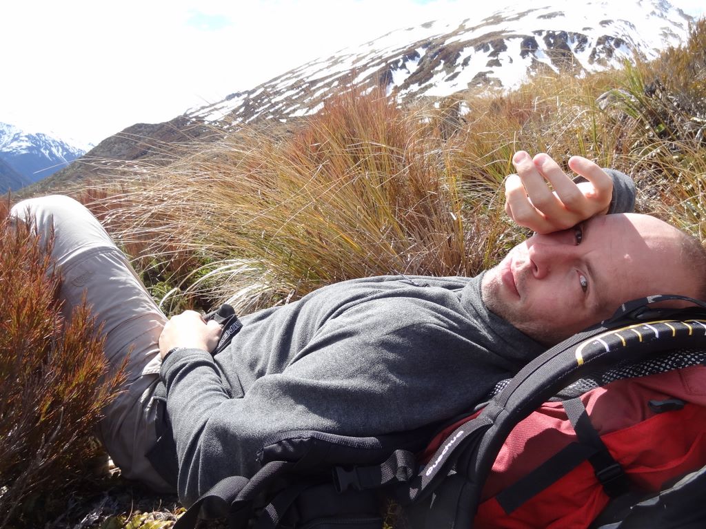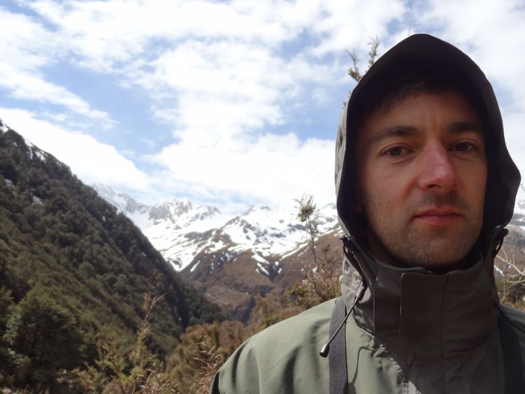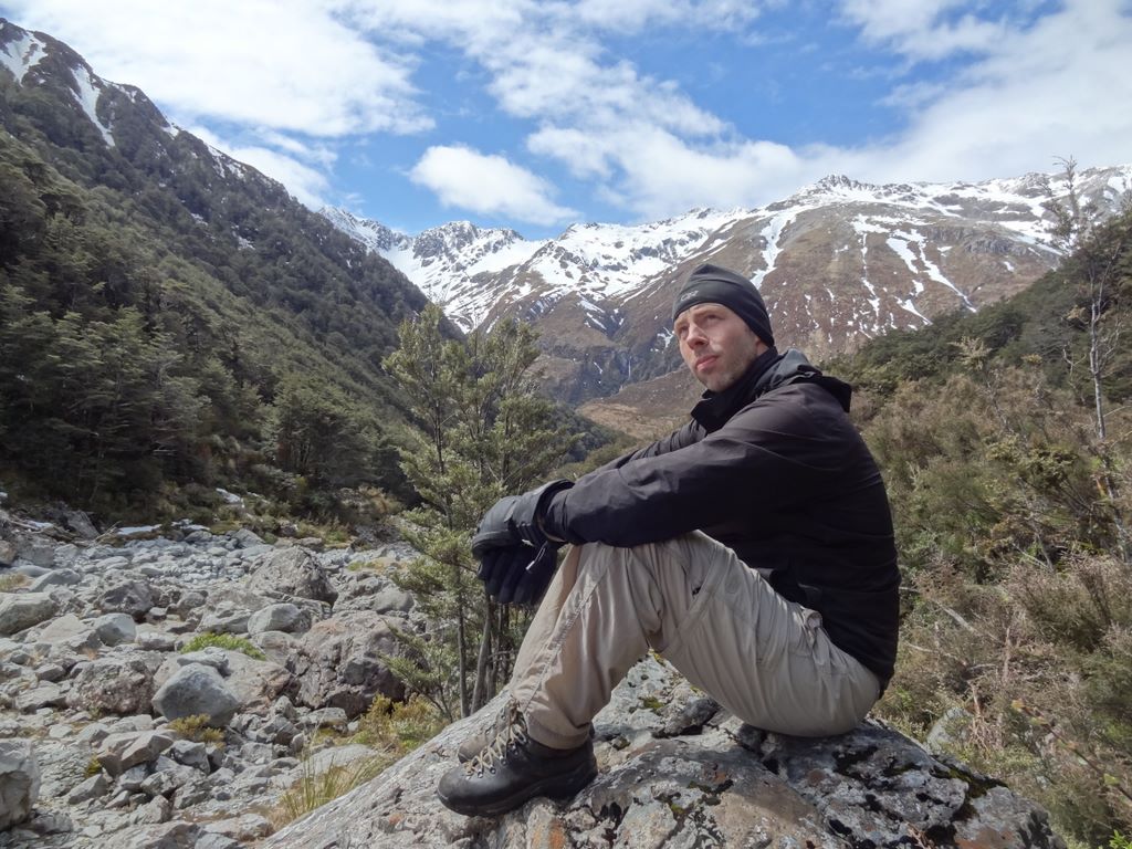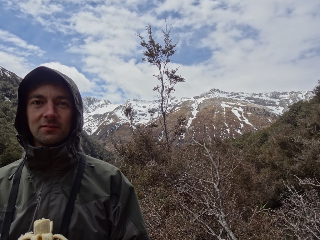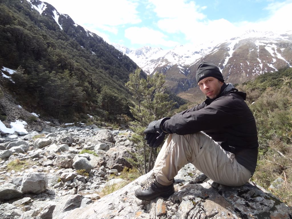 30. Seb et la vallée d'Arthur's Pass derrière lui.