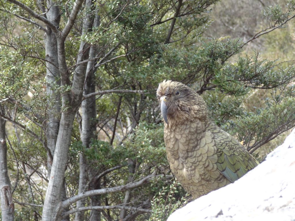 10. Dans les parages vit le célèbre kea, seul perroquet au monde vivant en montagne. Son plumage est vert ...