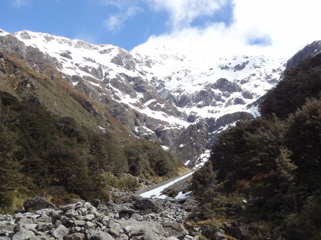 45. La vallée d'Arthur's Pass (enfin, une toute petite partie) avec en face, la Bealey Valley que nous avons remonté plus tôt, jusqu'à la neige.