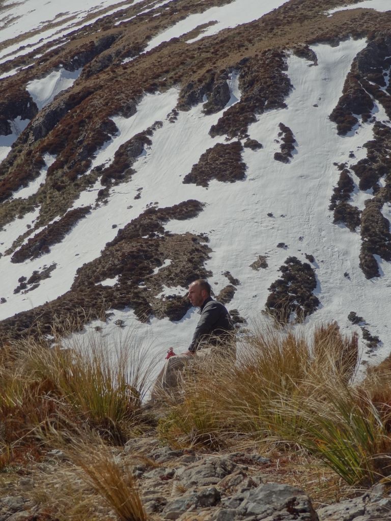 47. Ici, le Goldner Ridge en premier plan, qui remonte jusqu'au Mt Rolleston. Dans le creux de la vallée, le petit point où nous étions ce matin.